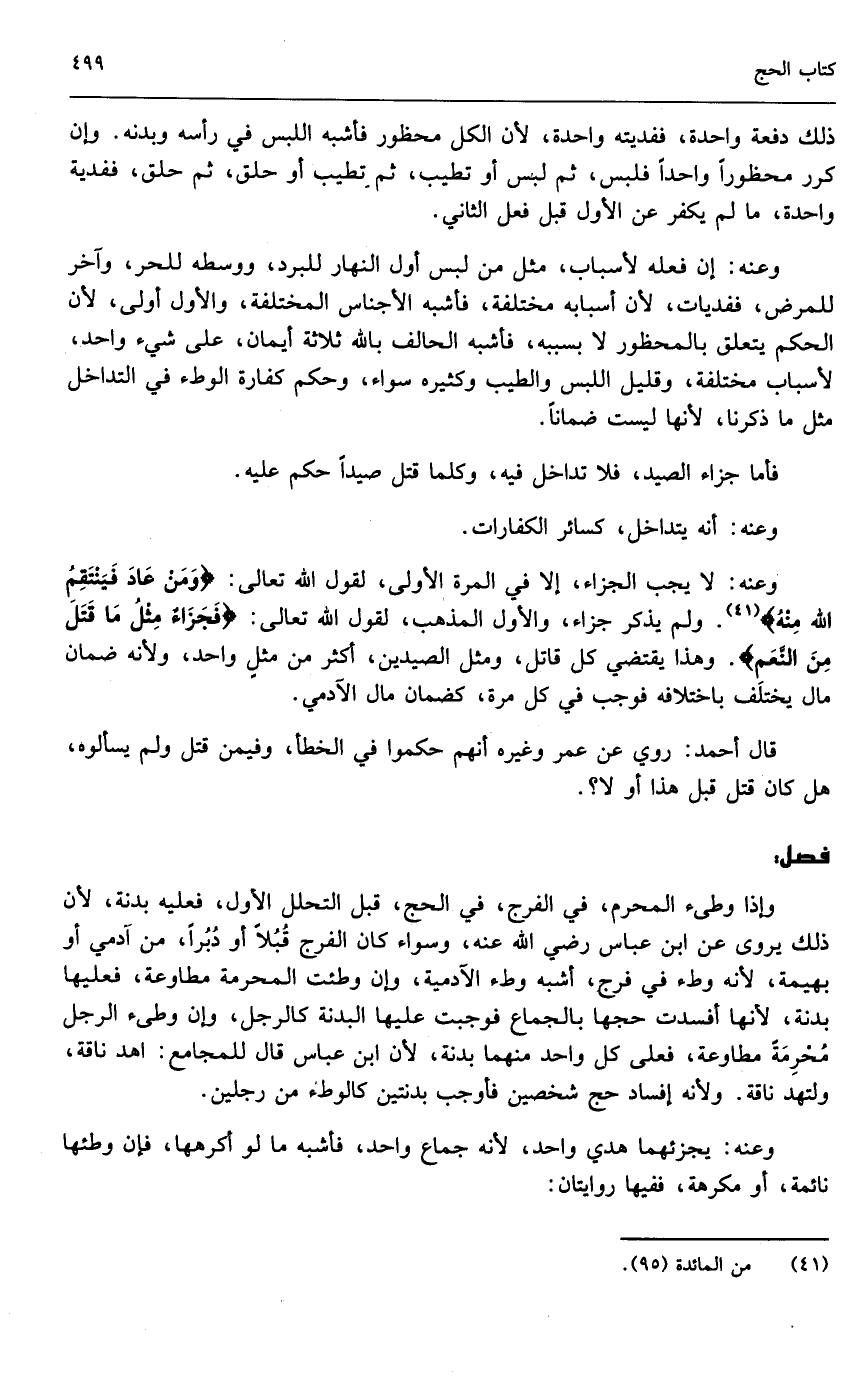وعنه: لا يجب الجزاء، إلا في المرة الأولى؛ لقول الله تعالى: {وَمَنْ عَادَ فَيَنْتَقِمُ اللَّهُ مِنْهُ} [المائدة: 95] ولم يذكر جزاء، والأول المذهب؛ لقول الله تعالى: {فَجَزَاءٌ مِثْلُ مَا قَتَلَ مِنَ النَّعَمِ} [المائدة: 95] . وهذا يقتضي كل قاتل، ومثل الصيدين، أكثر من مثل واحد، ولأنه ضمان مال يختلف باختلافه فوجب في كل مرة، كضمان مال الآدمي.