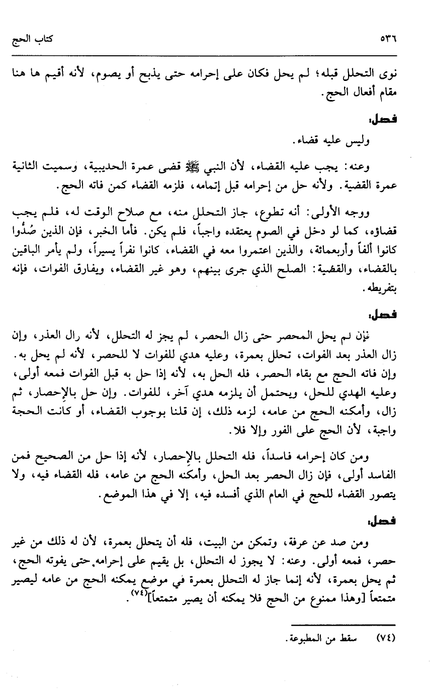 ووجه الأولى: أنه تطوع جاز التحلل منه، مع صلاح الوقت له، فلم يجب قضاؤه، كما لو دخل في الصوم يعتقده واجباً، فلم يكن. فأما الخبر، فإن الذين صدوا كانوا ألفاً وأربعمائة، والذين اعتمروا معه في القضاء كانوا نفراً يسيراً، ولم يأمر الباقين بالقضاء، والقضية: الصلح الذي جرى بينهم، وهو غير القضاء، ويفارق الفوات، فإنه بتفريطه.