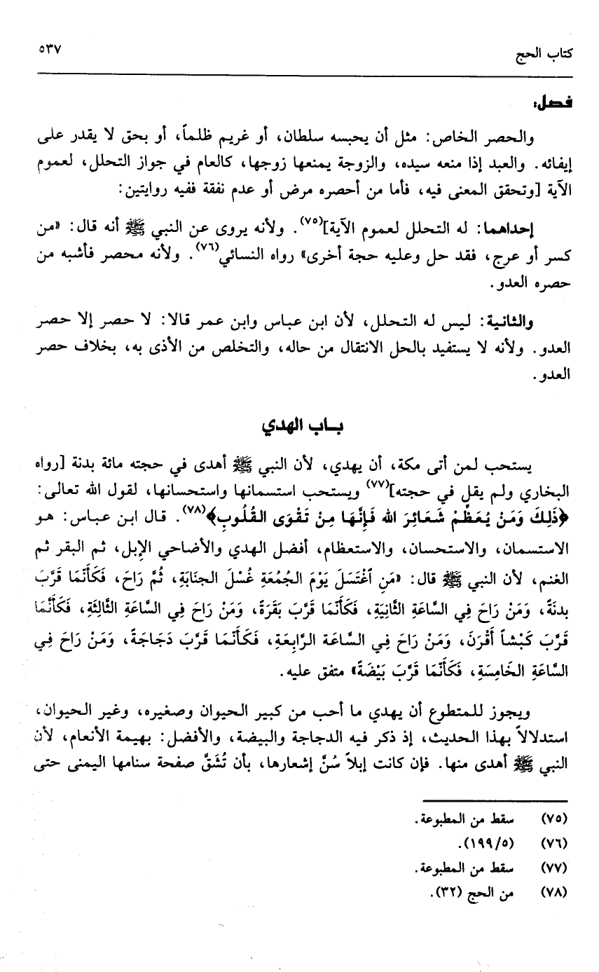 والحصر الخاص: مثل أن يحبسه سلطان، أو غريم ظلماً، أو بحق لا يقدر على إيفائه. والعبد إذا منعه سيده، والزوجة يمنعها زوجها، كالعام في جواز التحلل، لعموم الآية [وتحقق المعنى فيه، فأما من أحصره مرض أو عدم نفقة ففيه روايتان: