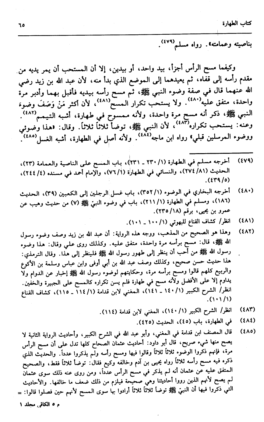 وكيفما مسح الرأس أجزأ، بيد واحدة، أو بيدين، إلا أن المستحب أن يمر يديه من مقدم رأسه إلى قفاه، ثم يعيدهما إلى الموضع الذي بدأ منه، لأن عبد الله بن زيد - رَضِيَ اللَّهُ عَنْهُمَا - قال في صفة وضوء النبي - صَلَّى اللَّهُ عَلَيْهِ وَسَلَّمَ -، «ثم مسح رأسه بيديه فأقبل بهما وأدبر مرة واحدة» ، متفق عليه. ولا يستحب تكرار المسح، لأن أكثر من وصف وضوء النبي - صَلَّى اللَّهُ عَلَيْهِ وَسَلَّمَ -، ذكر أنه مسح مرة واحدة، ولأنه ممسوح في طهارة، أشبه التيمم. وعنه: يستحب تكراره، لأن النبي - صَلَّى اللَّهُ عَلَيْهِ وَسَلَّمَ -، «توضأ ثلاثا ثلاثا. وقال: " هذا وضوئي ووضوء المرسلين قبلي» رواه ابن ماجه. ولأنه أصل في الطهارة، أشبه الغسل.