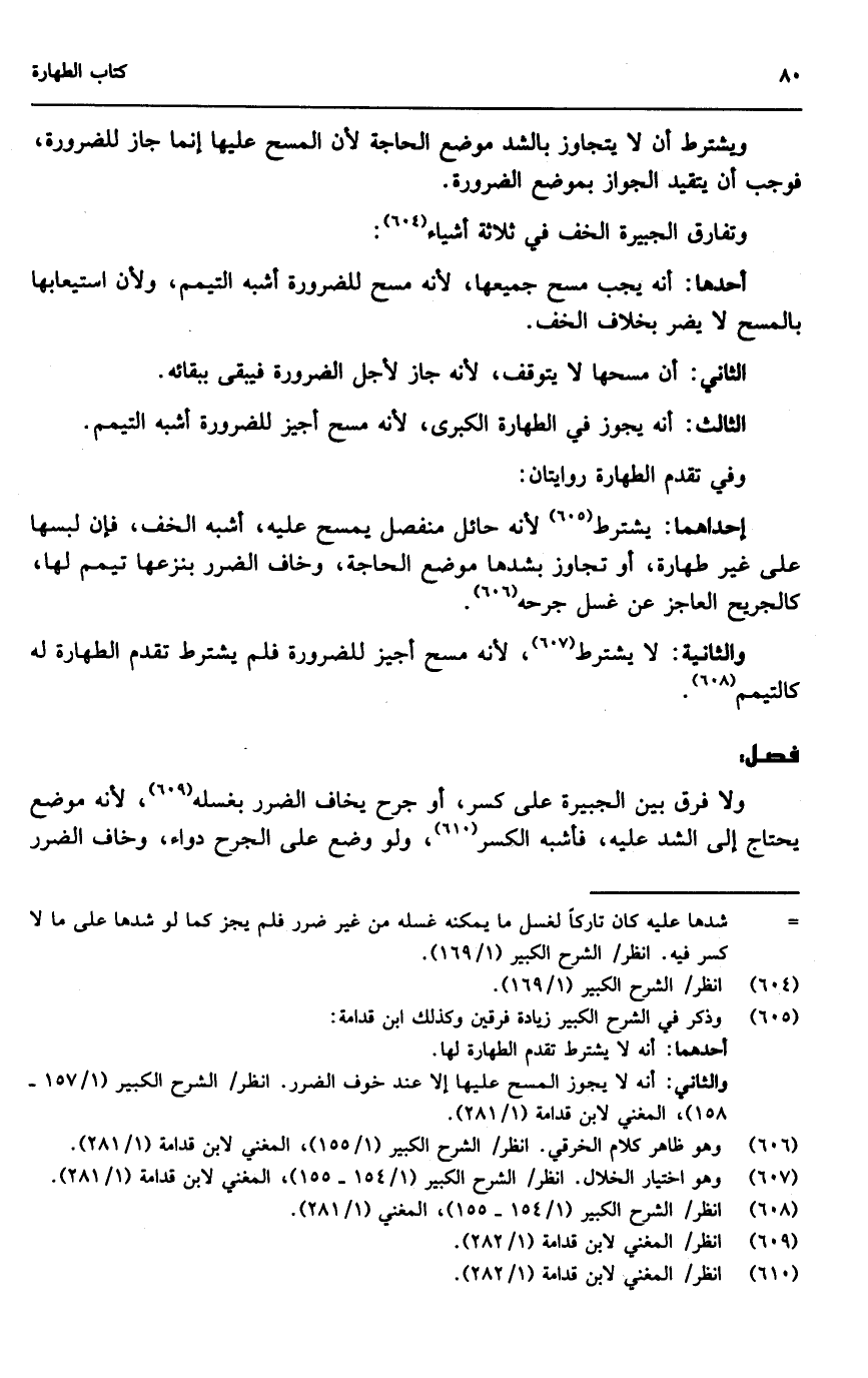 فصل: ولا فرق بين الجبيرة على كسر، أو جرح يخاف الضرر بغسله؛ لأنه موضع يحتاج إلى الشد عليه، فأشبه الكسر، ولو وضع على الجرح دواء، وخاف الضرر
