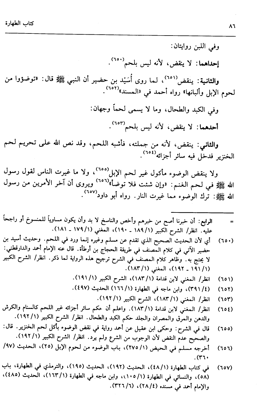 والثانية: ينقض، لما روى أسيد بن حضير أن النبي - صَلَّى اللَّهُ عَلَيْهِ وَسَلَّمَ - قال: «توضؤوا من لحوم الإبل وألبانها» رواه أحمد في المسند.