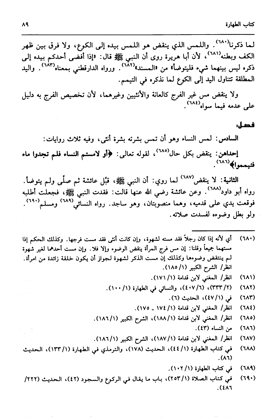 لما ذكرنا. واللمس الذي ينقض هو اللمس بيده إلى الكوع، ولا فرق بين ظهر الكف وبطنه، لأن أبا هريرة روى أن النبي - صَلَّى اللَّهُ عَلَيْهِ وَسَلَّمَ - قال: «إذا أفضى أحدكم بيده إلى ذكره ليس بينهما شيء فليتوضأ» من " المسند "، ورواه الدارقطني بمعناه. واليد المطلقة تتناول اليد إلى الكوع لما نذكره في التيمم.