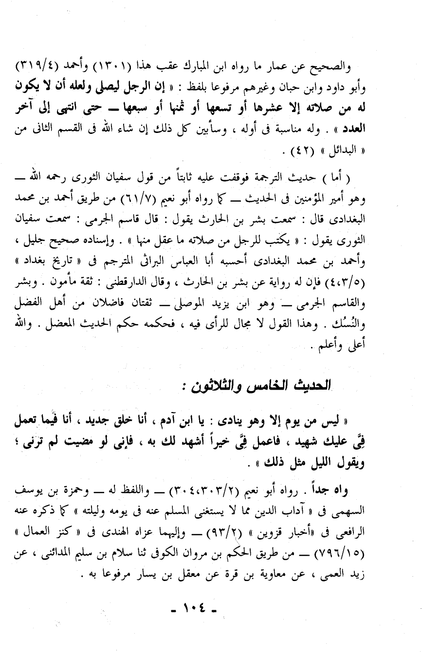 والصحيح عن عمار ما رواه ابن المبارك عقب هذا (1301) وأحمد (4/ 319) وأبو داود وابن حبان وغيرهم مرفوعًا بلفظ: "إن الرجل ليصلى ولعله أن لا يكون له من صلاته إلا عشرها أو تسعها أو ثمنها أو سبعها -حتى انتهى إلى آخر العدد". وله مناسبة في أوله، وسأبين كل ذلك إن شاء الله فى القسم الثانى من "البدائل" (42).