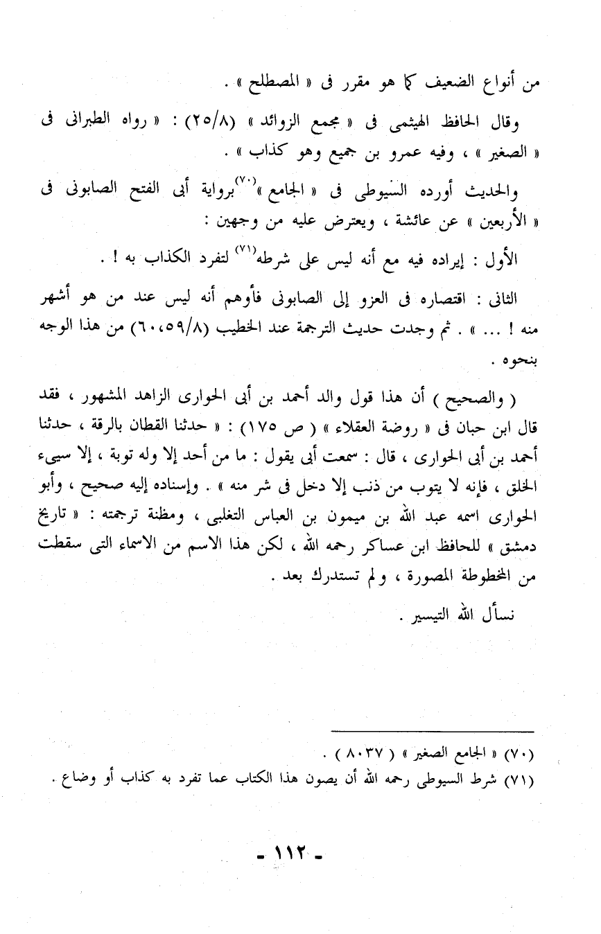 (¬71) شرط السيوطى رحمه الله أن يصون هذا الكتاب عما تفرد به كذاب أو وضاع.
