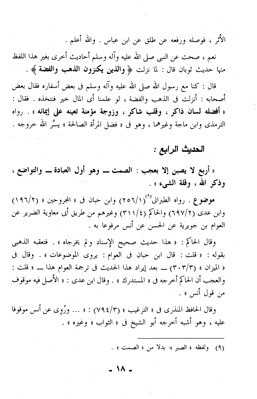 (¬9) ولفظه "الصبر" بدلا من "الصمت".