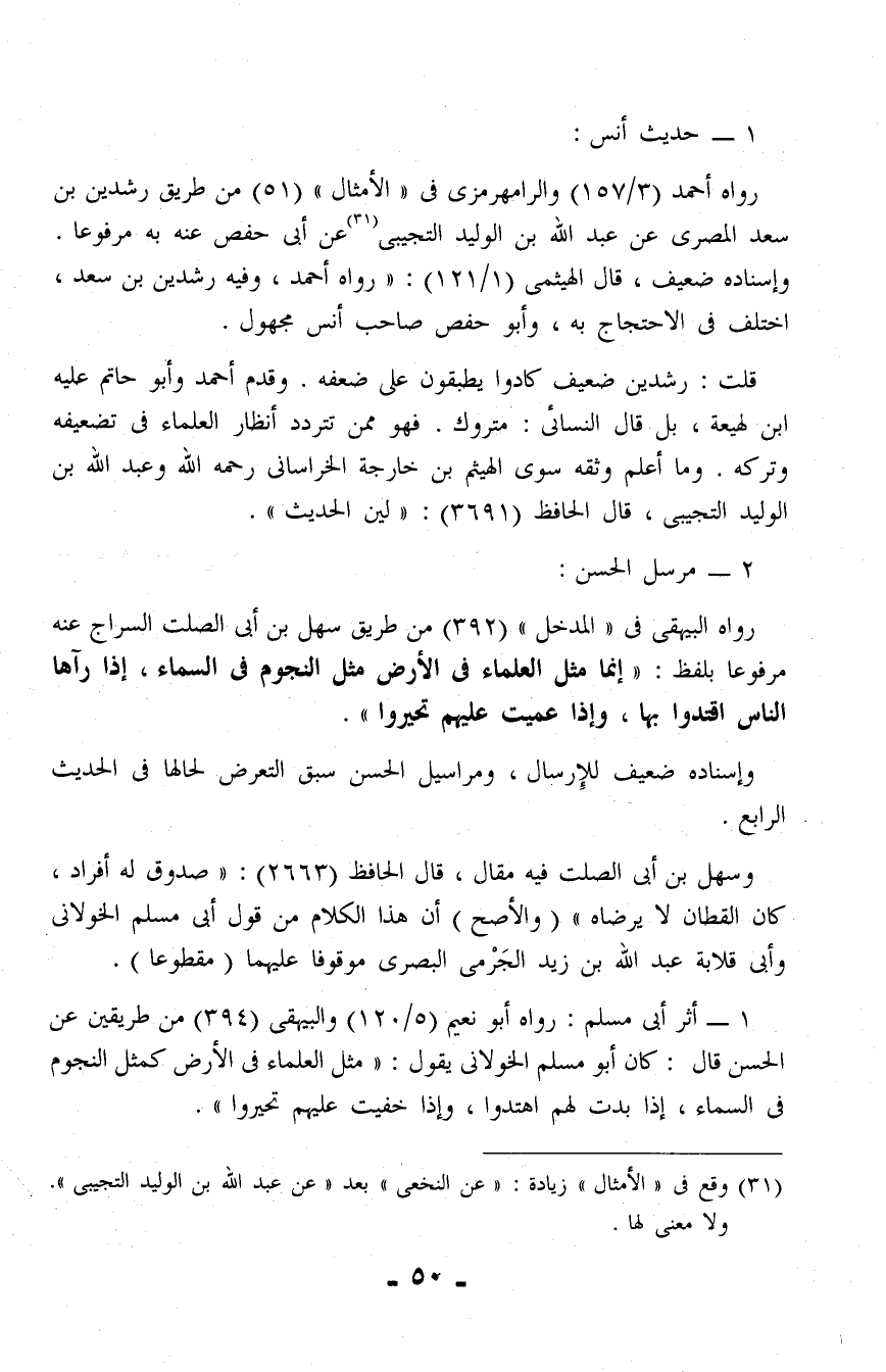 1 - أثر أبي مسلم: رواه أبو نعيم (5/ 120) والبيهقي (394) من طريقين عن الحسن قال: كان أبو مسلم الخولاني يقول: "مثل العلماء في الأرض كمثل النجوم في السماء، إذا بدت لهم اهتدوا، وإذا خفيت عليهم تحيروا".