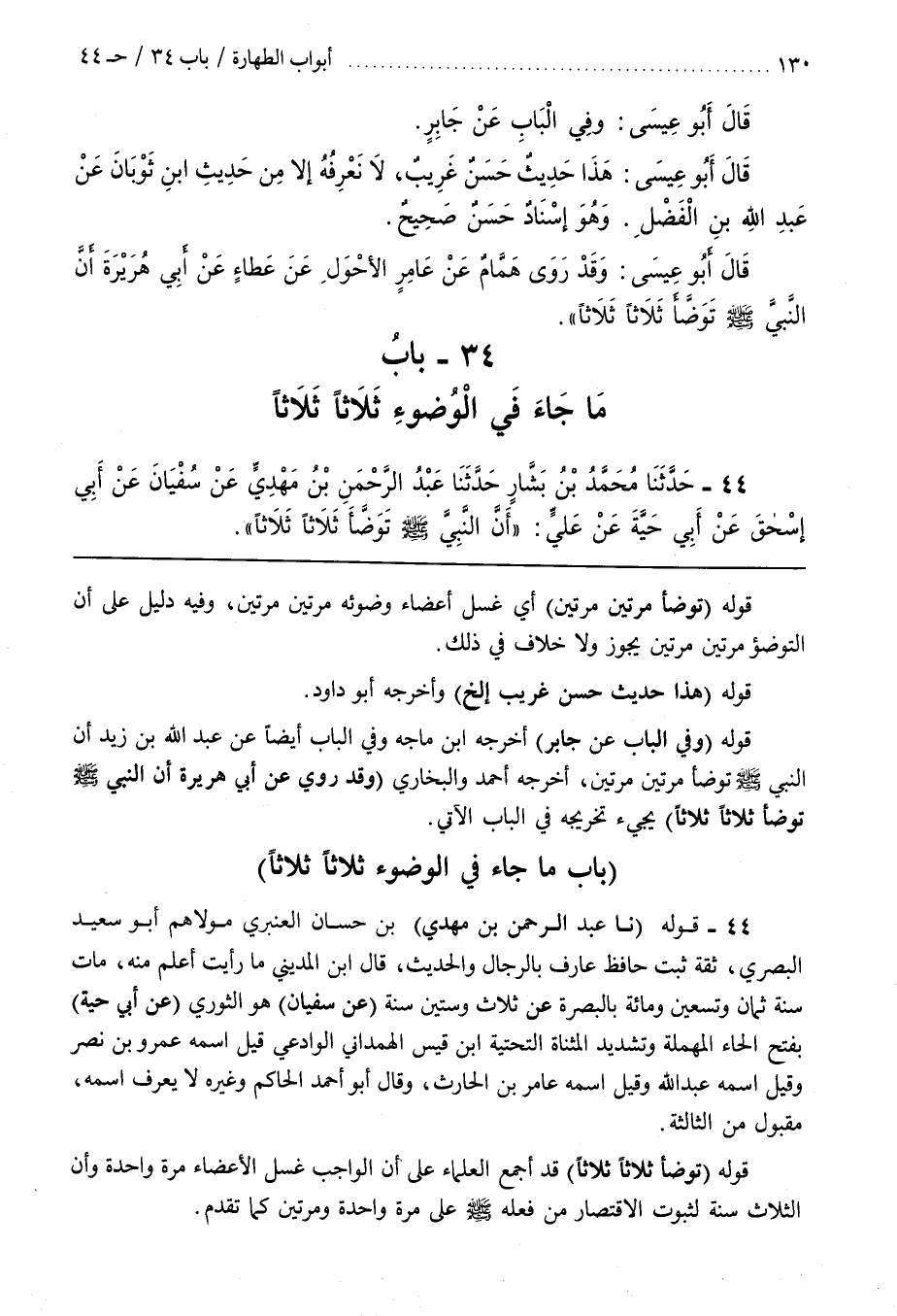 3 - (بَاب مَا جَاءَ فِي الْوُضُوءِ ثَلَاثًا ثَلَاثًا)