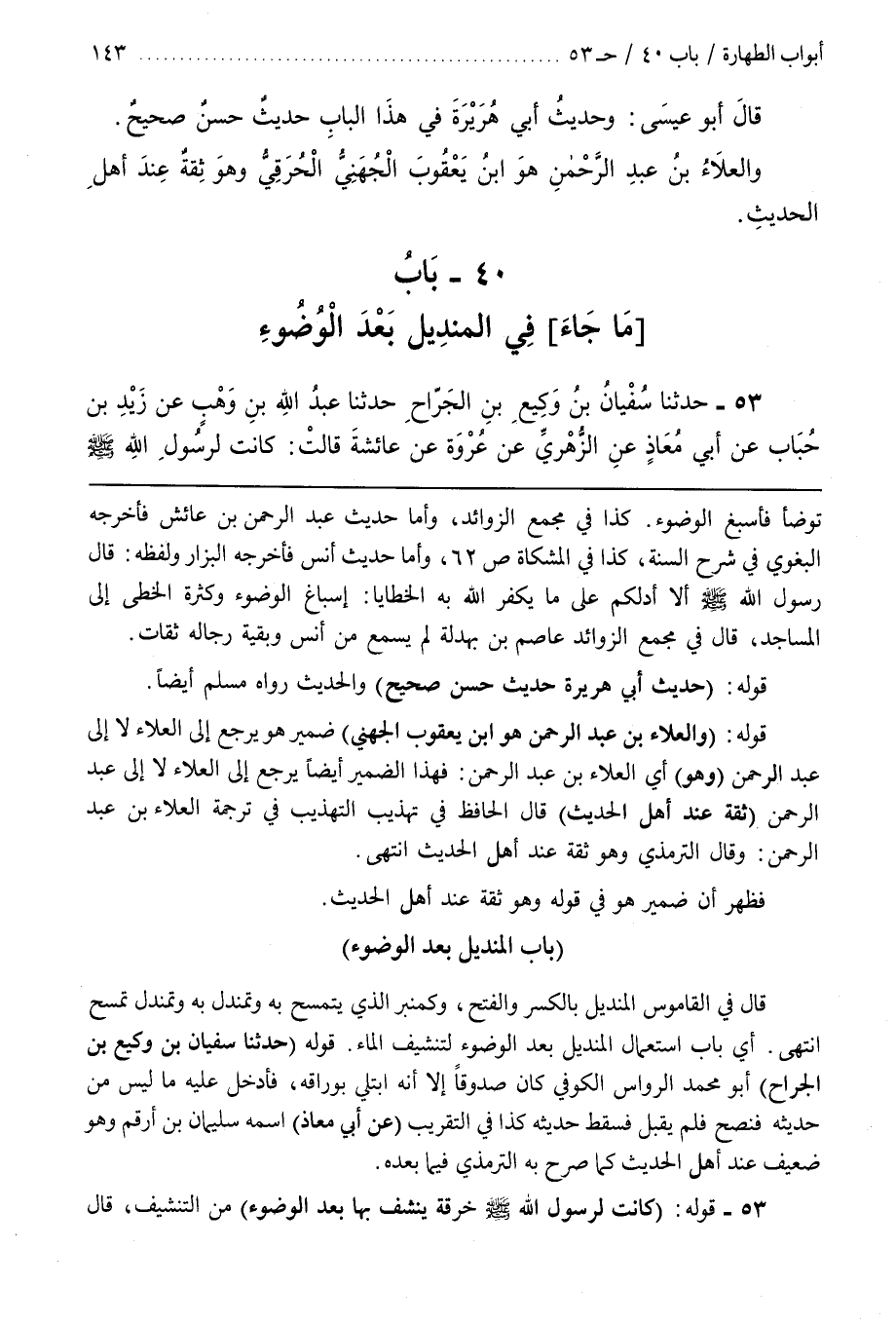 9 - (باب الْمِنْدِيلِ بَعْدَ الْوُضُوءِ)
