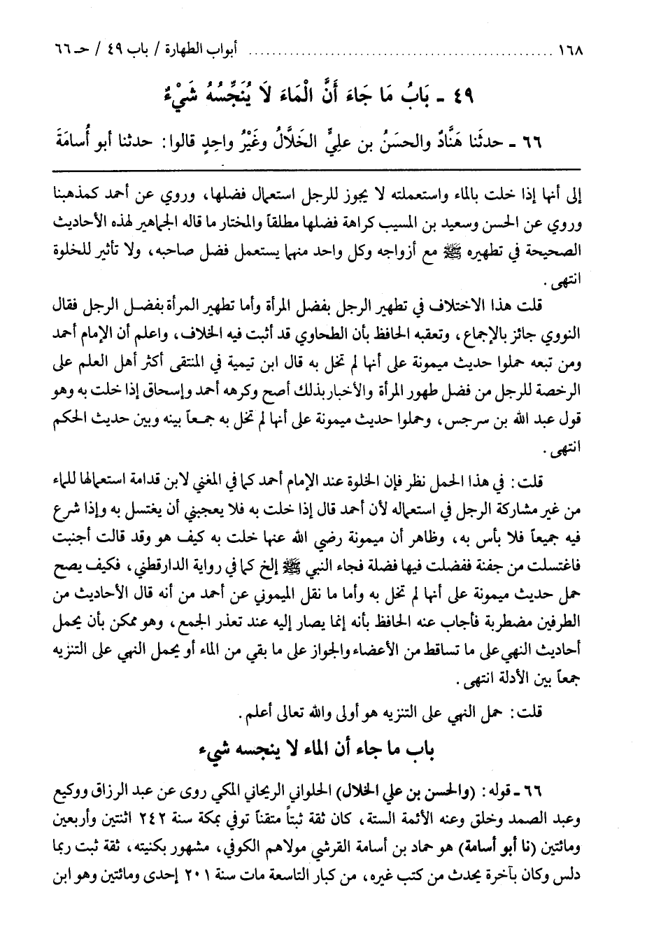 8 - (بَاب مَا جَاءَ أَنَّ الْمَاءَ لَا يُنَجِّسُهُ شَيْءٌ)