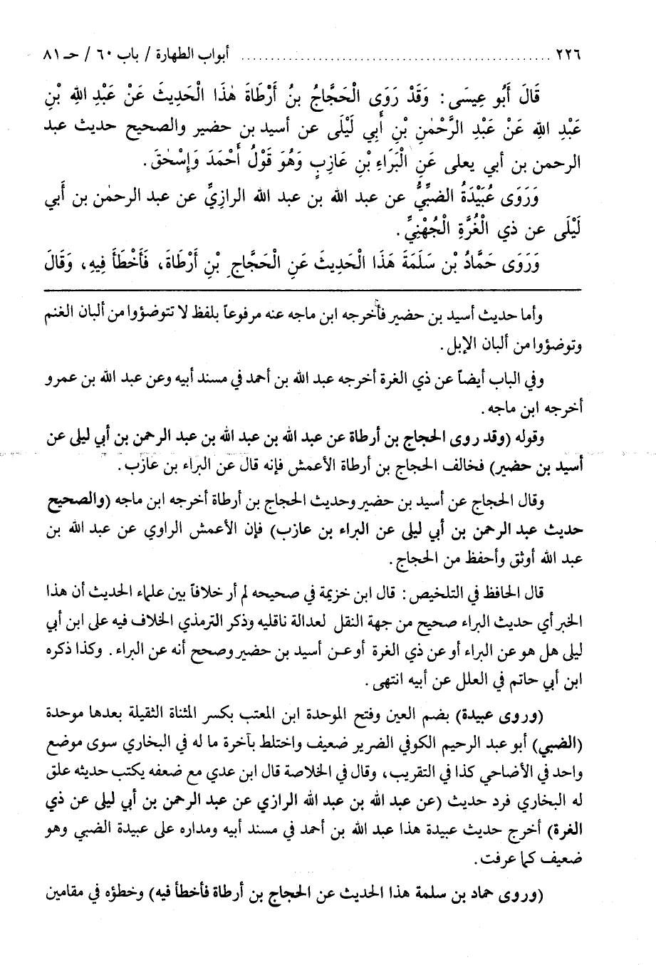 وَقَوْلُهُ (وَقَدْ رَوَى الْحَجَّاجُ بْنُ أَرْطَاةَ عَنْ عَبْدِ اللَّهِ بْنِ عَبْدِ اللَّهِ عَنْ عَبْدِ الرَّحْمَنِ بْنِ أَبِي لَيْلَى عَنْ أُسَيْدِ بْنِ حُضَيْرٍ) فَخَالَفَ الْحَجَّاجُ بْنُ أَرْطَاةَ الْأَعْمَشَ فَإِنَّهُ قَالَ عَنِ الْبَرَاءِ بْنِ عَازِبٍ