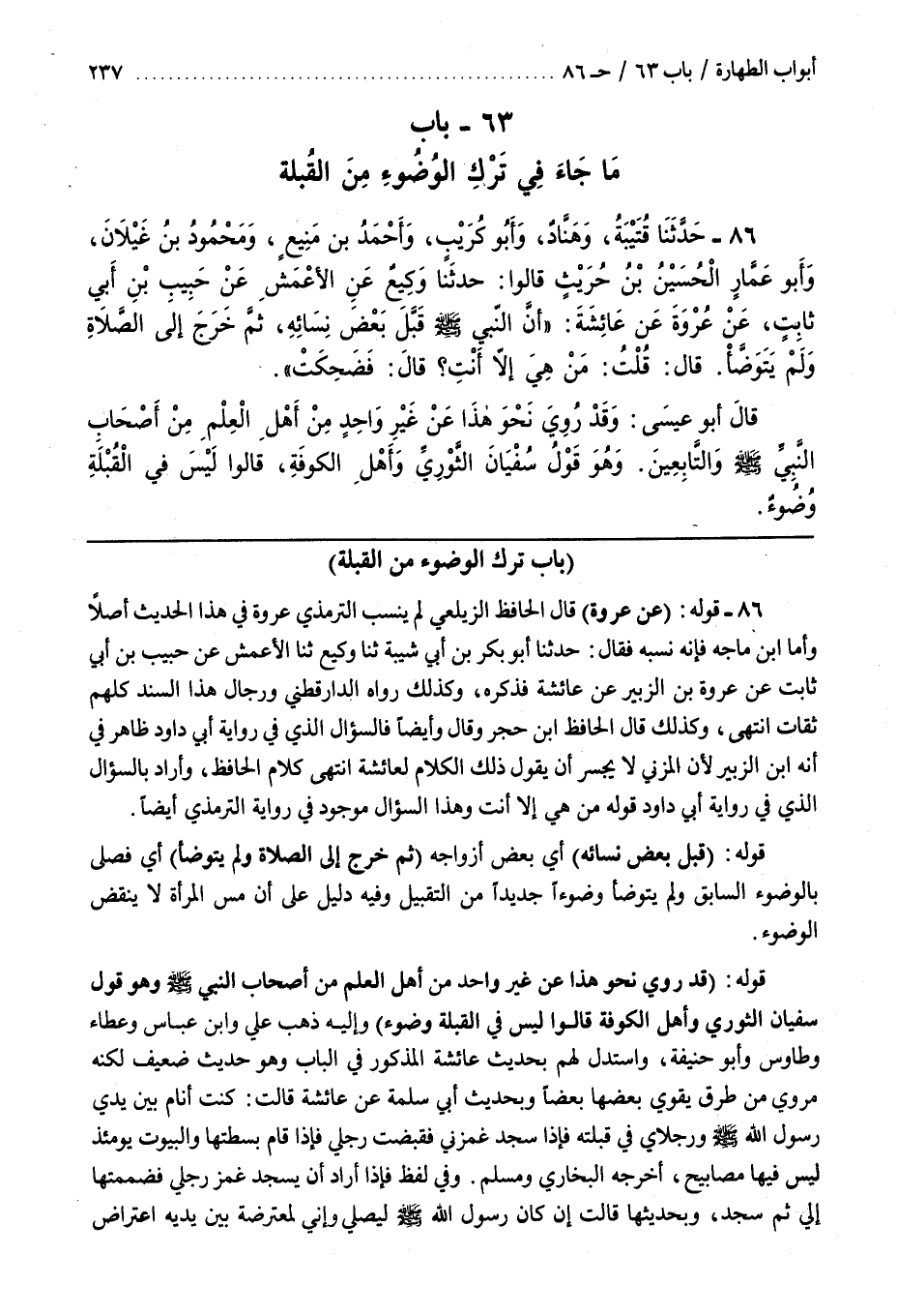 62 - (باب تَرْكِ الْوُضُوءِ مِنْ الْقُبْلَةِ)