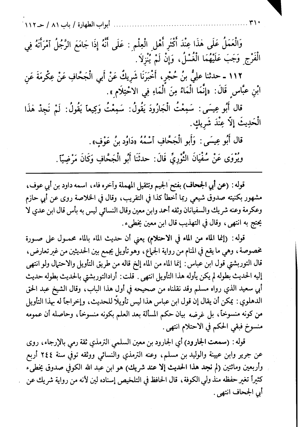 قُلْتُ أَرَادَ التُّورْبَشْتِيُّ بِالْحَدِيثِ بِطُولِهِ حَدِيثَ أَبِي سَعِيدٍ الَّذِي رَوَاهُ مُسْلِمٌ وَقَدْ نَقَلْنَاهُ مِنْ صَحِيحِهِ فِي أَوَّلِ هَذَا الْبَابِ وَقَالَ الشَّيْخُ عَبْدُ الْحَقِّ الدَّهْلَوِيُّ يُمْكِنُ أن يقال إن قول بن عَبَّاسٍ هَذَا لَيْسَ تَأْوِيلًا لِلْحَدِيثِ وَإِخْرَاجًا لَهُ بِهَذَا التَّأْوِيلِ مِنْ كَوْنِهِ مَنْسُوخًا بَلْ غَرَضُهُ بَيَانُ حُكْمِ الْمَسْأَلَةِ بَعْدَ الْعِلْمِ بِكَوْنِهِ مَنْسُوخًا وَحَاصِلُهُ أَنَّ عُمُومَهُ مَنْسُوخٌ فَبَقِيَ الْحُكْمُ فِي الِاحْتِلَامِ انْتَهَى