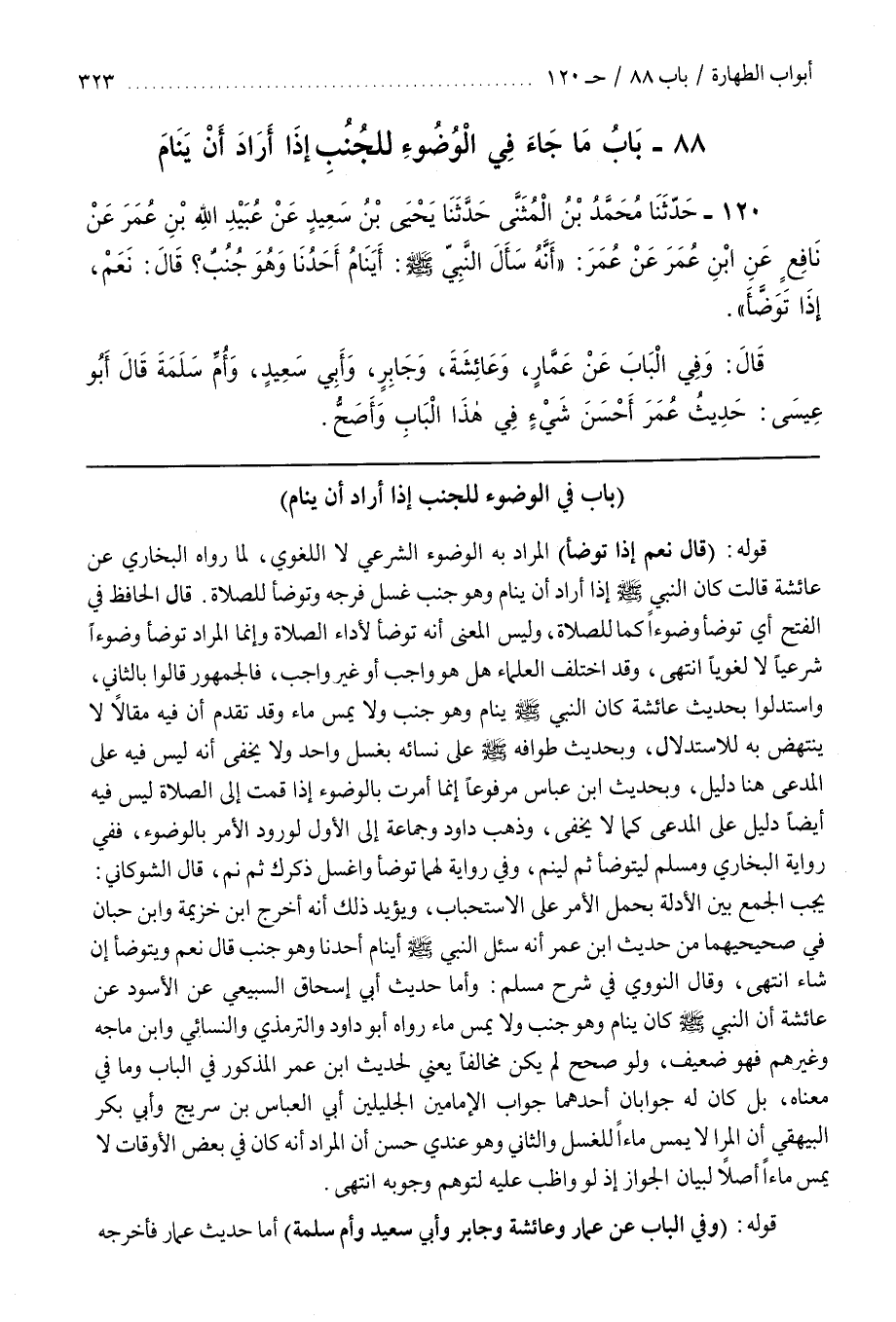 87 - (باب فِي الْوُضُوءِ لِلْجُنُبِ إِذَا أَرَادَ أَنْ يَنَامَ)