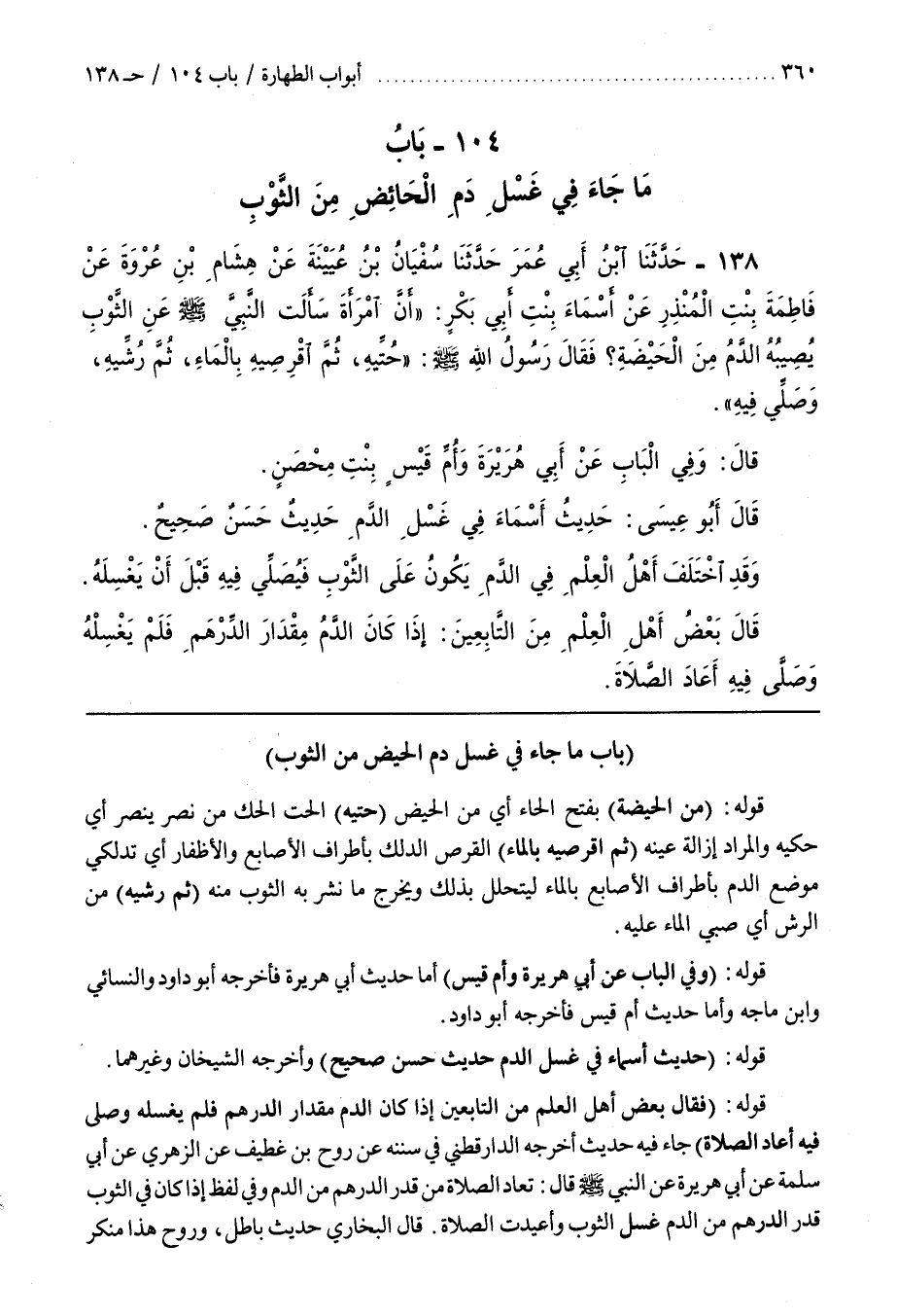 103 - (بَاب مَا جَاءَ فِي غَسْلِ دَمِ الْحَيْضِ مِنْ الثَّوْبِ)