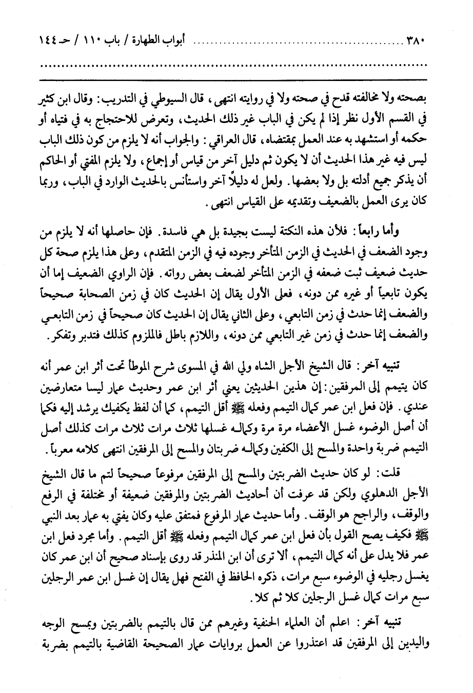 تَنْبِيهٌ آخَرُ قَالَ الشَّيْخُ الْأَجَلُّ الشَّاهْ وَلِيُّ اللَّهِ فِي الْمُسَوَّى شَرْحِ الْمُوَطَّأِ تَحْتَ أثر بن عُمَرَ أَنَّهُ كَانَ يَتَيَمَّمُ إِلَى الْمِرْفَقَيْنِ