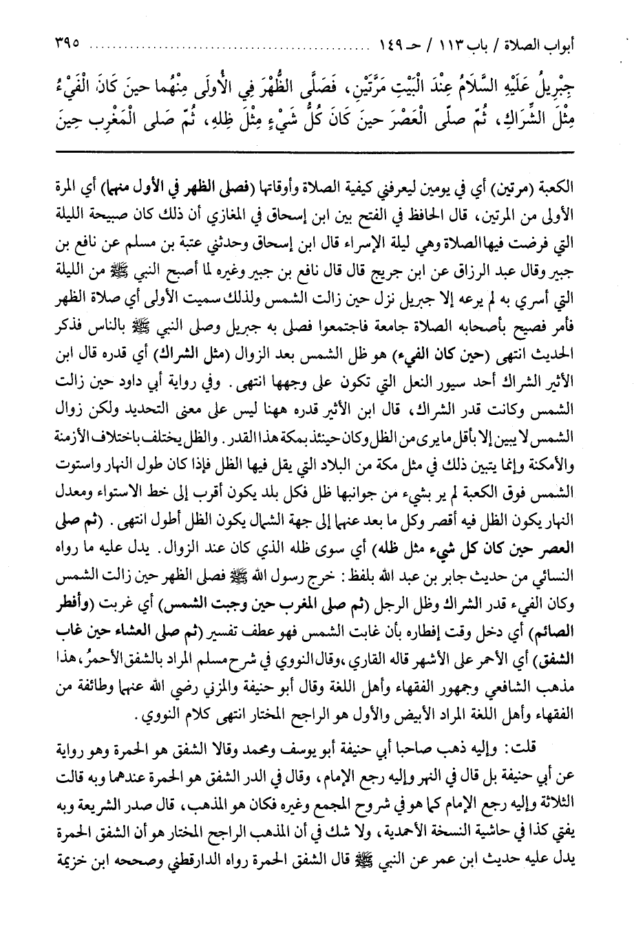 قُلْتُ وَإِلَيْهِ ذَهَبَ صَاحِبَا أَبِي حَنِيفَةَ أَبُو يُوسُفَ وَمُحَمَّدٌ وَقَالَا الشَّفَقُ هُوَ الْحُمْرَةُ وَهُوَ رِوَايَةٌ عَنْ أَبِي حَنِيفَةَ بَلْ قَالَ فِي النَّهْرِ وَإِلَيْهِ رَجَعَ الْإِمَامُ وَقَالَ فِي الدُّرِّ الشَّفَقُ هُوَ الْحُمْرَةُ عِنْدَهُمَا وَبِهِ قَالَتِ الثَّلَاثَةُ وَإِلَيْهِ رَجَعَ الْإِمَامُ كَمَا هُوَ فِي شُرُوحِ الْمَجْمَعِ وَغَيْرِهِ فَكَانَ هُوَ الْمَذْهَبَ قَالَ صَدْرُ الشَّرِيعَةِ وَبِهِ يُفْتَى كَذَا فِي حَاشِيَةِ النُّسْخَةِ الْأَحْمَدِيَّةِ وَلَا شَكَّ فِي أَنَّ الْمَذْهَبَ الرَّاجِحَ الْمُخْتَارَ هُوَ أَنَّ الشَّفَقَ الْحُمْرَةُ يَدُلُّ عليه حديث بْنِ عُمَرَ عَنِ النَّبِيِّ صَلَّى اللَّهُ عَلَيْهِ وسلم قال الشفق الحمرة رواه الدارقطني وصححه بن خزيمة