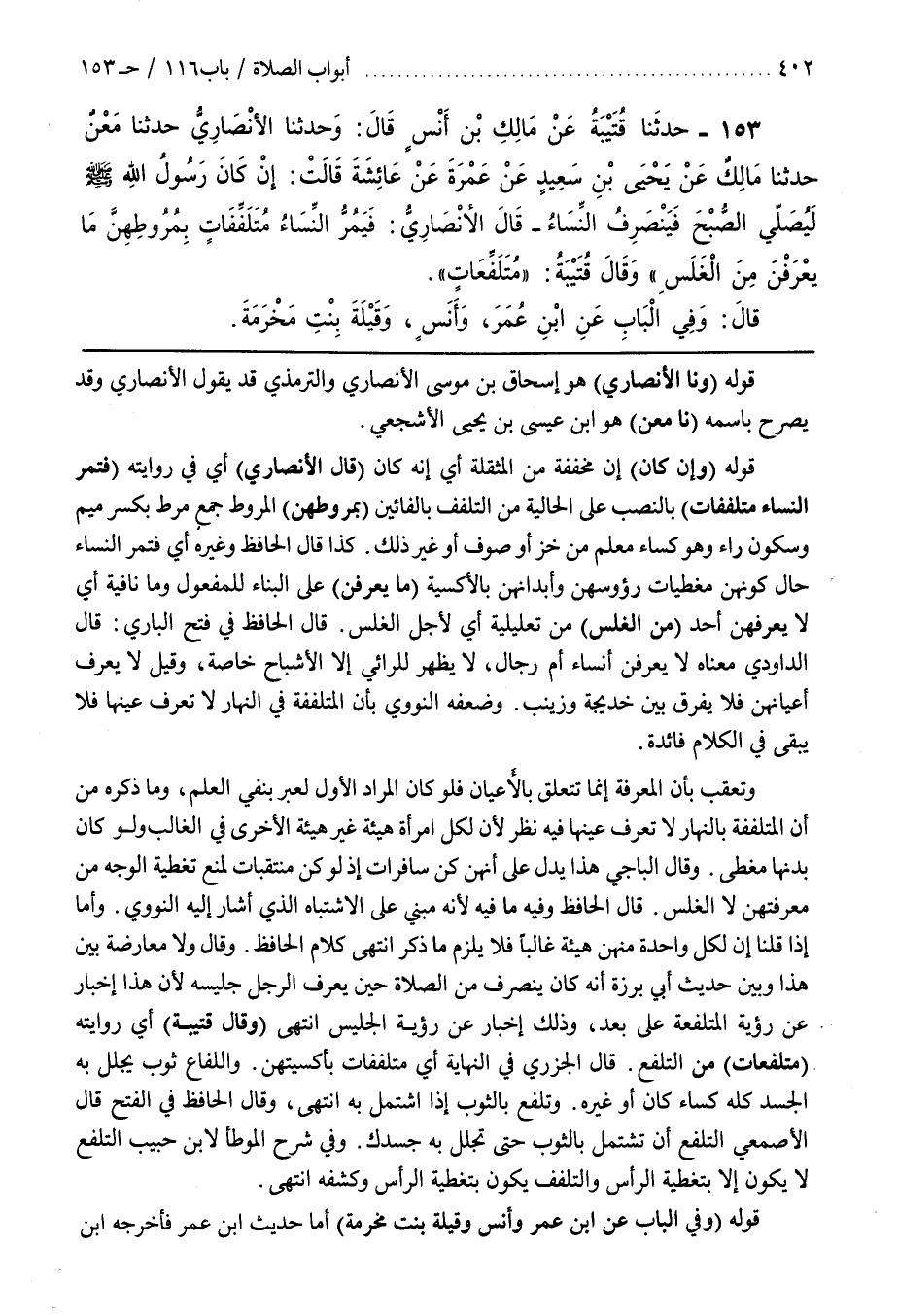 [153] قَوْلُهُ (وَنَا الْأَنْصَارِيُّ) هُوَ إِسْحَاقُ بْنُ مُوسَى الْأَنْصَارِيُّ وَالتِّرْمِذِيُّ قَدْ يَقُولُ الْأَنْصَارِيُّ وَقَدْ يُصَرِّحُ باسمه (نا معن) هو بن عِيسَى بْنُ يَحْيَى الْأَشْجَعِيُّ