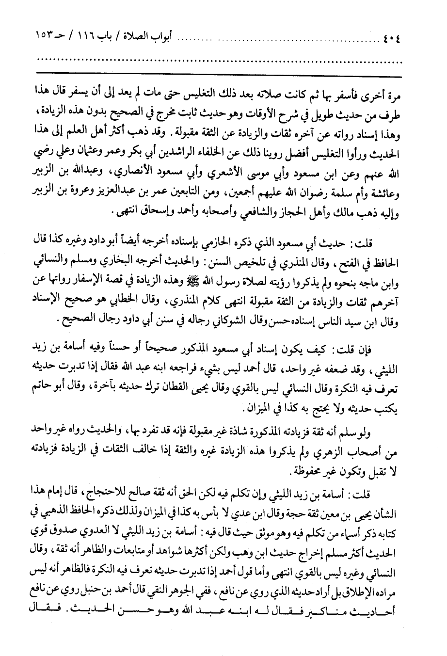 فَإِنْ قُلْتَ كَيْفَ يَكُونُ إِسْنَادُ أَبِي مَسْعُودٍ الْمَذْكُورِ صَحِيحًا أَوْ حَسَنًا وَفِيهِ أُسَامَةُ بْنُ زَيْدٍ اللَّيْثِيُّ وَقَدْ ضَعَّفَهُ غَيْرُ وَاحِدٍ قَالَ أَحْمَدُ لَيْسَ بِشَيْءٍ فَرَاجَعَهُ ابْنُهُ عَبْدُ اللَّهِ فَقَالَ إِذَا تَدَبَّرْتَ حَدِيثَهُ تَعْرِفُ فِيهِ النُّكْرَةَ وَقَالَ النَّسَائِيُّ لَيْسَ بِالْقَوِيِّ وَقَالَ يَحْيَى الْقَطَّانُ تُرِكَ حَدِيثُهُ بِأَخَرَةٍ وَقَالَ أَبُو حَاتِمٍ يُكْتَبُ حَدِيثُهُ وَلَا يُحْتَجُّ بِهِ كَذَا فِي الْمِيزَانِ
