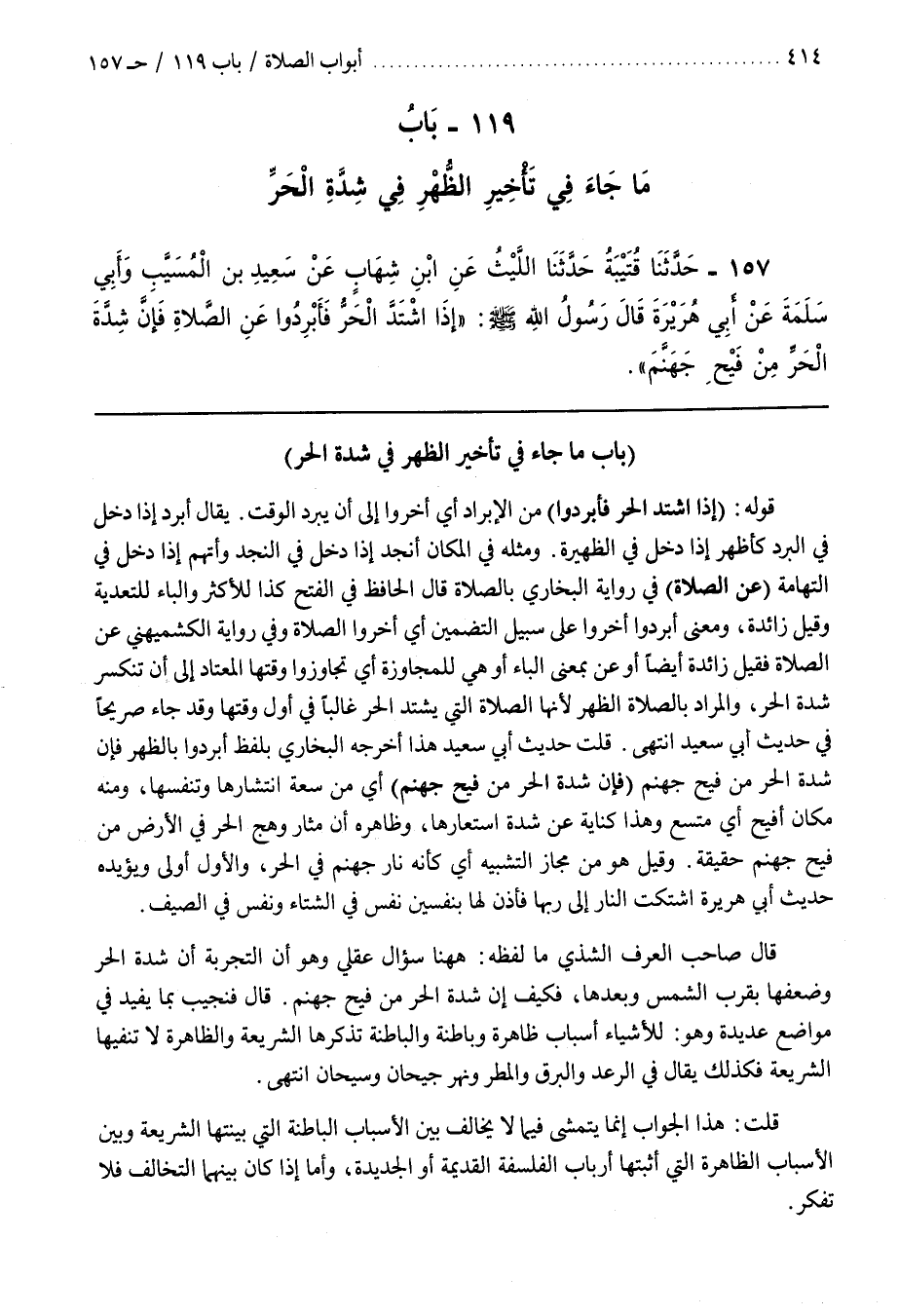 [157] قَوْلُهُ (إِذَا اشْتَدَّ الْحَرُّ فَأَبْرِدُوا مِنَ الْإِبْرَادِ أَيْ أَخِّرُوا إِلَى أَنْ يَبْرُدَ الْوَقْتُ