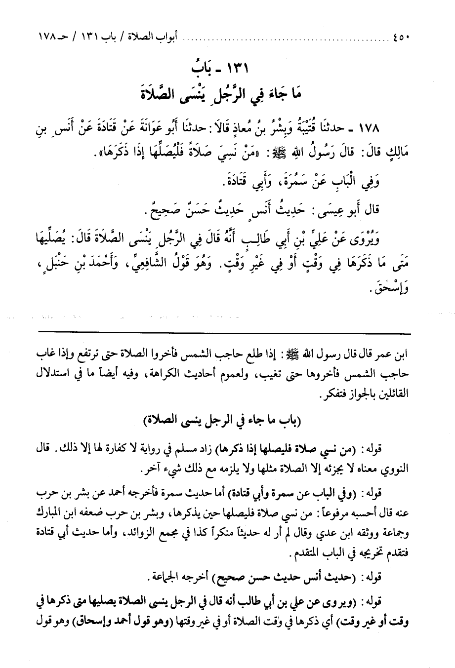 [178] قَوْلُهُ (مَنْ نَسِيَ الصَّلَاةَ فَلْيُصَلِّهَا إِذَا ذَكَرَهَا) زَادَ مُسْلِمٌ فِي رِوَايَةٍ لَا كَفَّارَةَ لَهَا إِلَّا ذَلِكَ