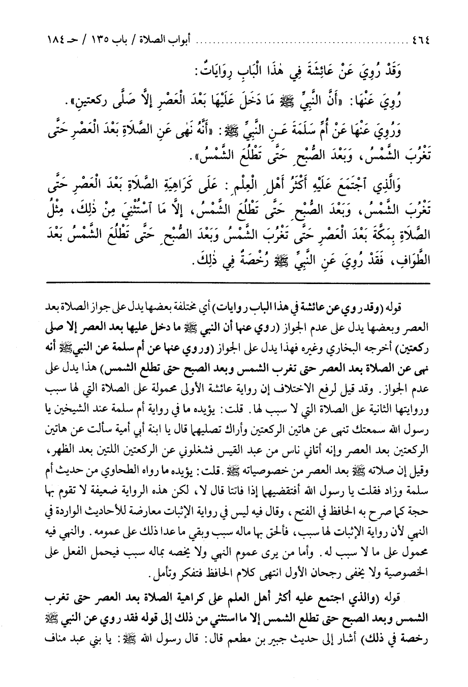 قَوْلُهُ (وَقَدْ رُوِيَ عَنْ عَائِشَةَ فِي هَذَا الْبَابِ رِوَايَاتٌ) أَيْ مُخْتَلِفَةٌ بَعْضُهَا يَدُلُّ عَلَى جَوَازِ الصَّلَاةِ بَعْدَ الْعَصْرِ وَبَعْضُهَا يَدُلُّ عَلَى عَدَمِ الْجَوَازِ (رُوِيَ عَنْهَا أَنَّ النَّبِيَّ صَلَّى اللَّهُ عَلَيْهِ وَسَلَّمَ مَا دَخَلَ عَلَيْهَا بَعْدَ الْعَصْرِ إِلَّا صَلَّى رَكْعَتَيْنِ) أَخْرَجَهُ الْبُخَارِيُّ وَغَيْرُهُ فَهَذَا يَدُلُّ عَلَى الْجَوَازِ (وَرُوِيَ عَنْهَا عَنْ أُمِّ سَلَمَةَ عَنِ النَّبِيِّ صَلَّى اللَّهُ عَلَيْهِ وَسَلَّمَ أَنَّهُ نَهَى عَنِ الصَّلَاةِ بَعْدَ الْعَصْرِ حَتَّى تَغْرُبَ الشَّمْسُ وَبَعْدَ الصُّبْحِ حَتَّى تَطْلُعَ الشَّمْسُ) هَذَا يَدُلُّ عَلَى عَدَمِ الْجَوَازِ