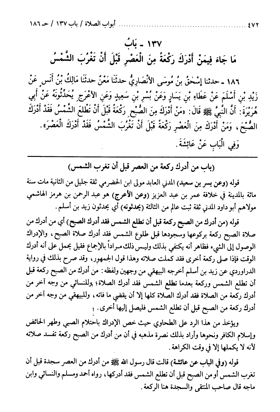 24 - (باب من أَدْرَكَ رَكْعَةً مِنْ الْعَصْرِ قَبْلَ أَنْ تَغْرُبَ الشَّمْسُ)