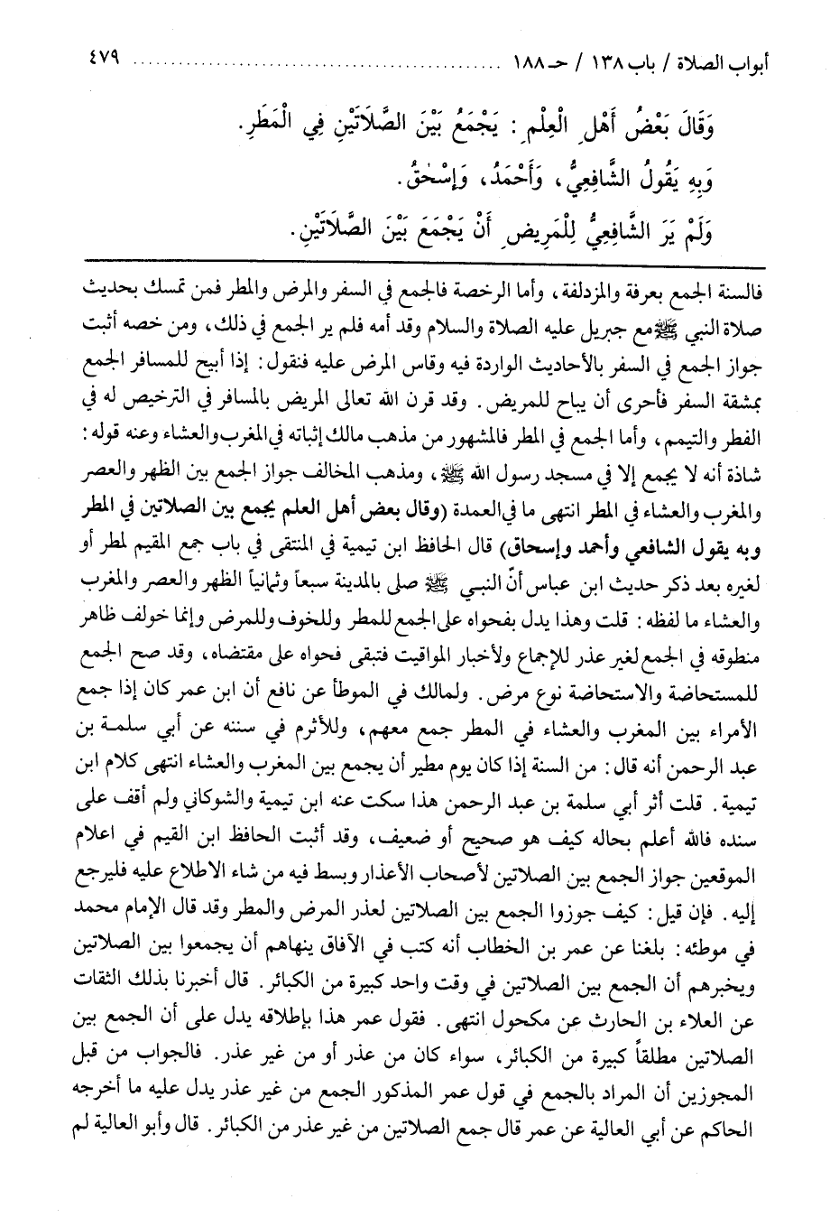 قُلْتُ أَثَرُ أَبِي سَلَمَةَ بْنِ عَبْدِ الرحمن هذا سكت عنه بن تَيْمِيَّةَ وَالشَّوْكَانِيُّ وَلَمْ أَقِفْ عَلَى سَنَدِهِ فَاَللَّهُ أَعْلَمُ بِحَالِهِ كَيْفَ هُوَ صَحِيحٌ أَوْ ضَعِيفٌ وقد أثبت الحافظ بن الْقَيِّمِ فِي إِعْلَامِ الْمُوَقِّعِينَ جَوَازَ الْجَمْعِ بَيْنَ الصَّلَاتَيْنِ لِأَصْحَابِ الْأَعْذَارِ وَبَسَطَ فِيهِ مَنْ شَاءَ الِاطِّلَاعَ عَلَيْهِ فَلْيَرْجِعْ إِلَيْهِ
