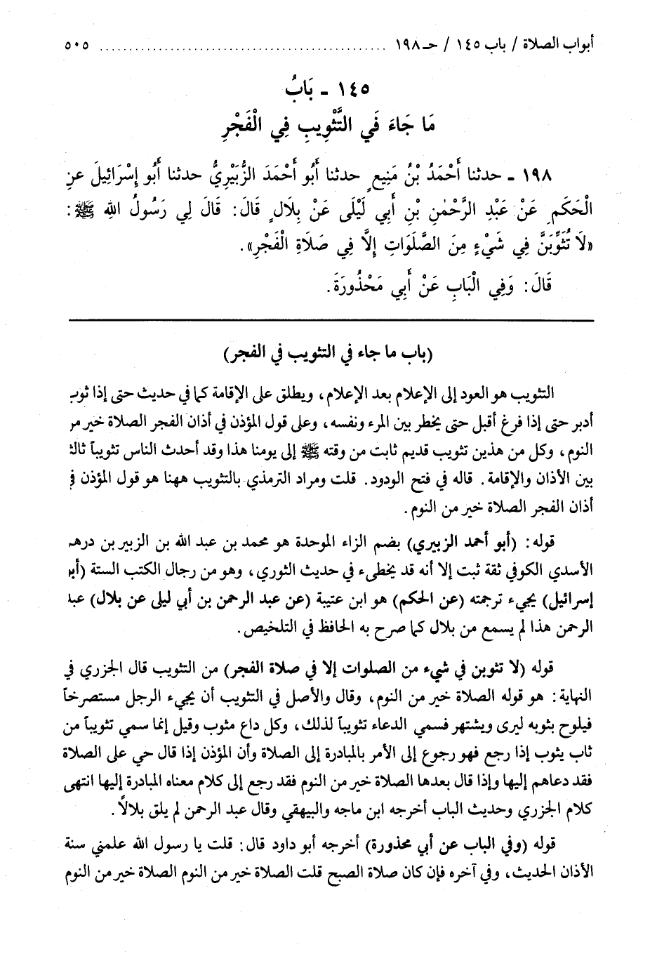 [198] قَوْلُهُ (أَبُو أَحْمَدَ الزُّبَيْرِيُّ) بضم الزاء الْمُوَحَّدَةِ هُوَ مُحَمَّدُ بْنُ عَبْدِ اللَّهِ بْنِ الزُّبَيْرِ بْنِ دِرْهَمٍ الْأَسَدِيُّ الْكُوفِيُّ ثِقَةٌ ثَبْتٌ إلا أنه قد يخطىء فِي حَدِيثِ الثَّوْرِيِّ وَهُوَ مِنْ رِجَالِ الْكُتُبِ السِّتَّةِ (أَبُو إِسْرَائِيلَ) يَجِيءُ تَرْجَمَتُهُ (عَنِ الْحَكَمِ) هو بن عُتَيْبَةَ (عَنْ عَبْدِ الرَّحْمَنِ بْنِ أَبِي لَيْلَى عَنْ بِلَالٍ) عَبْدُ الرَّحْمَنِ هَذَا لَمْ يَسْمَعْ مِنْ بِلَالٍ كَمَا صَرَّحَ بِهِ الْحَافِظُ فِي التَّلْخِيصِ