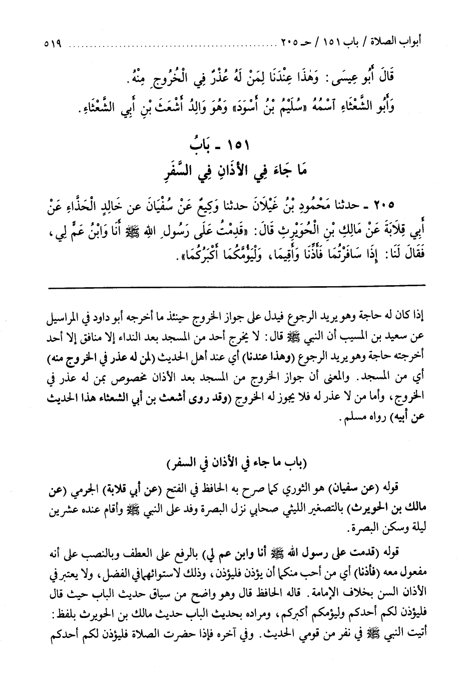 [205] قَوْلُهُ (عَنْ سُفْيَانَ) هُوَ الثَّوْرِيُّ كَمَا صَرَّحَ بِهِ الْحَافِظُ فِي الْفَتْحِ (عَنْ أَبِي قِلَابَةَ) الْجَرْمِيِّ (عَنْ مَالِكِ بْنِ الْحُوَيْرِثِ) بِالتَّصْغِيرِ اللَّيْثِيِّ صَحَابِيٌّ نَزَلَ الْبَصْرَةَ وَفَدَ عَلَى النَّبِيِّ صَلَّى اللَّهُ عَلَيْهِ وَسَلَّمَ وَأَقَامَ عِنْدَهُ عِشْرِينَ لَيْلَةً وَسَكَنَ الْبَصْرَةَ