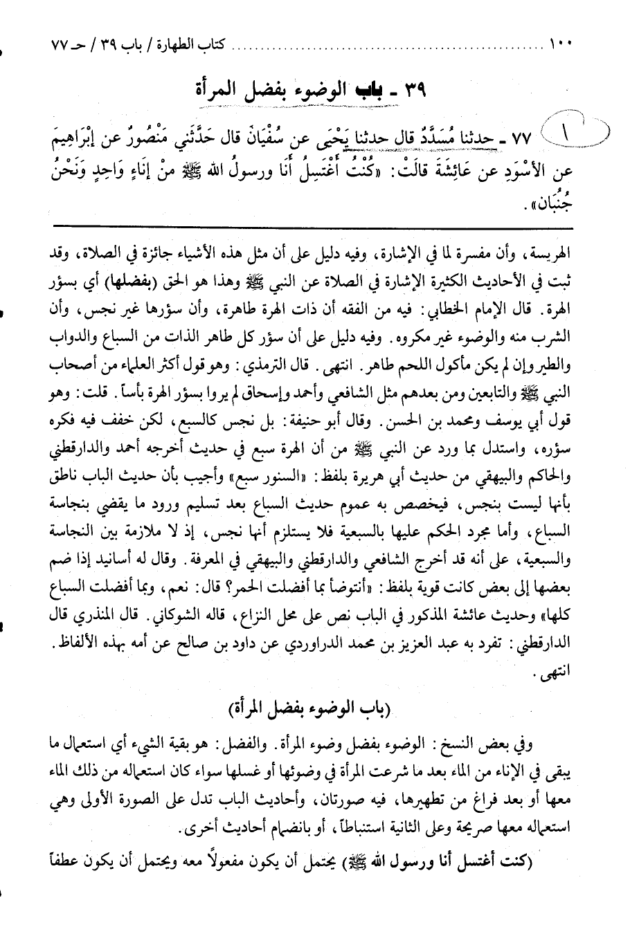 [77] وَفِي بَعْضِ النُّسَخِ الْوُضُوءُ بِفَضْلِ وَضُوءِ الْمَرْأَةِ