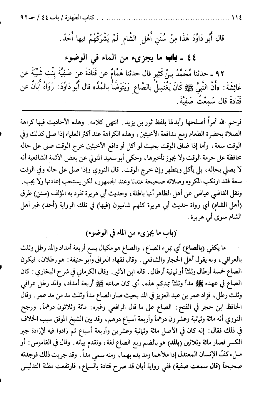 [92] (بِالصَّاعِ) أَيْ بِمِلْءِ الصَّاعِ وَالصَّاعُ هُوَ مِكْيَالٌ يَسَعُ أَرْبَعَةَ أَمْدَادٍ وَالْمُدُّ رِطْلٌ وَثُلُثٌ بِالْعِرَاقِيِّ وَبِهِ يَقُولُ أَهْلُ الْحِجَازِ وَالشَّافِعِيُّ