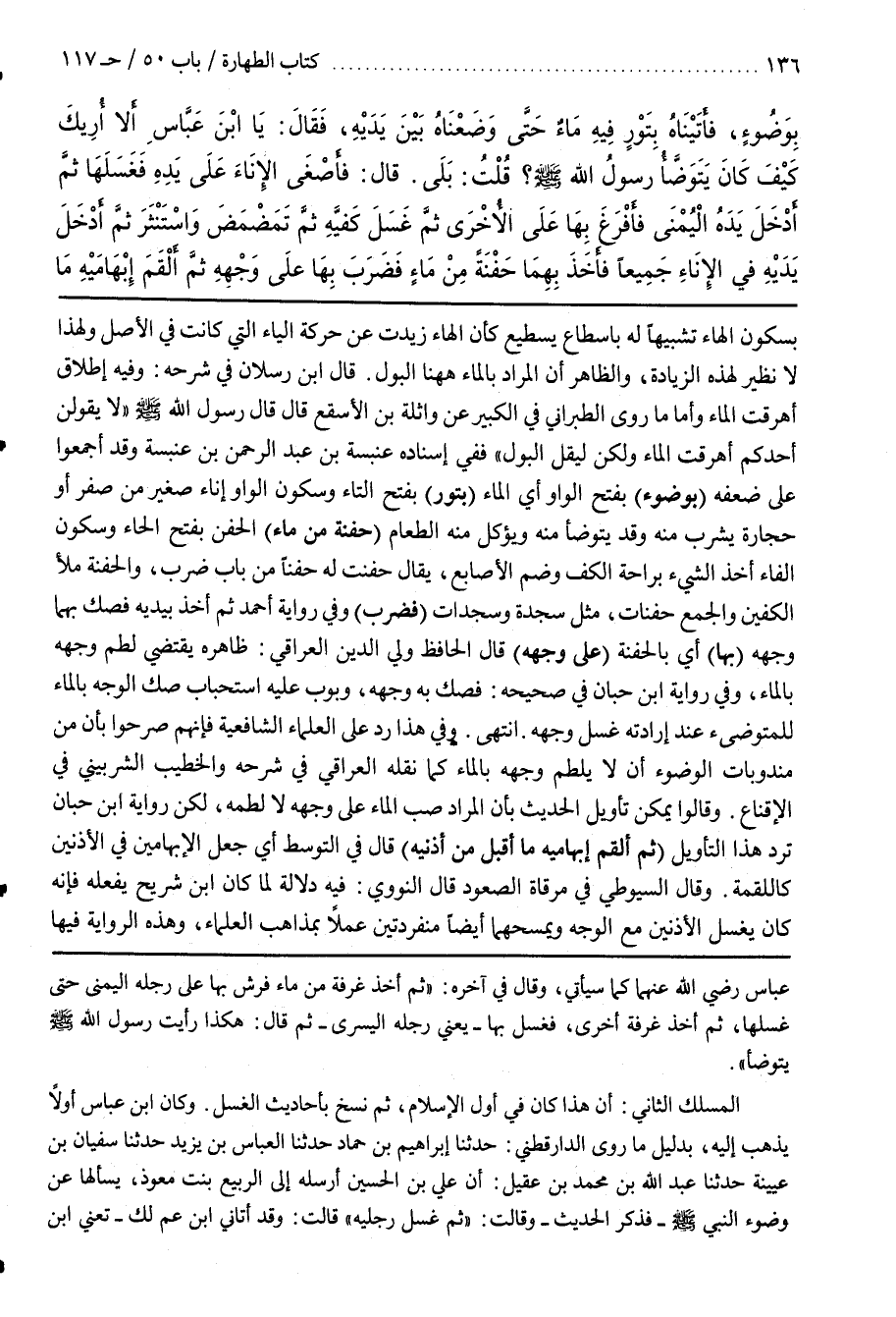 وكان بن عَبَّاسٍ أَوَّلًا يَذْهَب إِلَيْهِ بِدَلِيلِ مَا رَوَى الدَّارَقُطْنِيُّ حَدَّثَنَا إِبْرَاهِيمُ بْنُ حَمَّادٍ حَدَّثْنَا الْعَبَّاسُ بْنُ يَزِيدَ حَدَّثَنَا سُفْيَانُ بْنُ عُيَيْنَةَ حَدَّثَنَا عبد الله بن محمد بن عقيل أن عَلِيَّ بْنَ الْحُسَيْنِ أَرْسَلَهُ إِلَى الرُّبَيِّعِ بِنْتِ مُعَوِّذٍ يَسْأَلهَا عَنْ وُضُوء النَّبِيِّ صَلَّى اللَّه عَلَيْهِ وَسَلَّمَ فَذَكَر الْحَدِيث وَقَالَتْ ثُمَّ غَسَلَ رجليه قالت وقد أتاني بن عم لك تعني بن