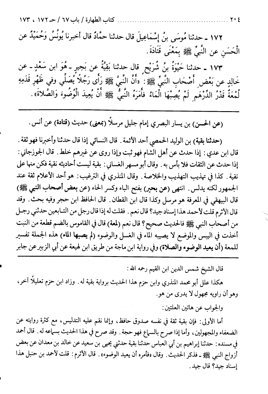 ــــــــــــQقال الشيخ شمس الدين بن القيم رحمه الله هكذا علل أبو محمد المنذري وبن حَزْمٍ هَذَا الْحَدِيث بِرِوَايَةِ بَقِيَّةَ لَهُ