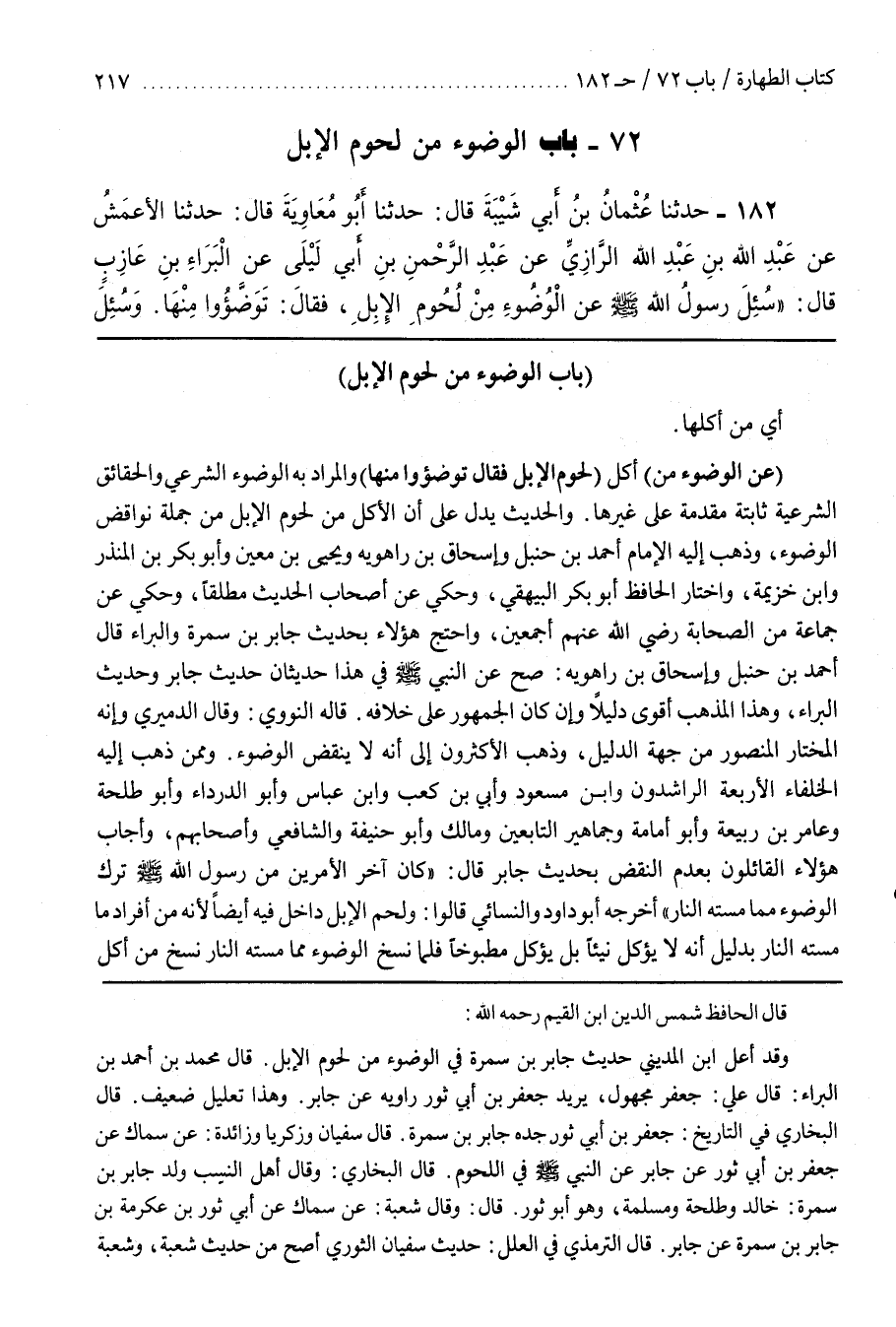 ــــــــــــQقَالَ الْحَافِظُ بْنُ الْقَيِّمِ رَحِمَهُ اللَّه وَقَدْ أعل بن الْمَدِينِيِّ حَدِيثِ جَابِرِ بْنِ سَمُرَةَ فِي الْوُضُوء مِنْ لُحُوم الْإِبِل