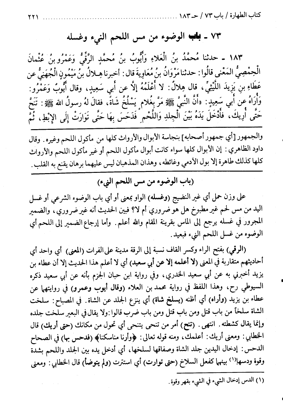 3 - (بَاب الْوُضُوءِ مِنْ مَسِّ اللَّحْمِ النِّيءِ)