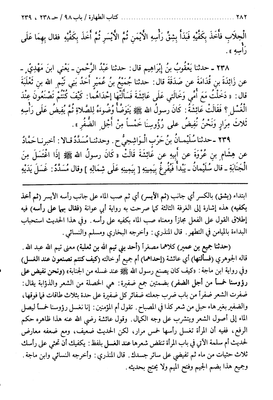 تَقُولُ أُمُّ الْمُؤْمِنِينَ إنا نغسل رؤوسنا خَمْسًا لِيَصِلَ الْمَاءُ إِلَى أُصُولِ الشَّعْرِ وَيَتَشَرَّبَ عَلَى وَجْهِ الْكَمَالِ