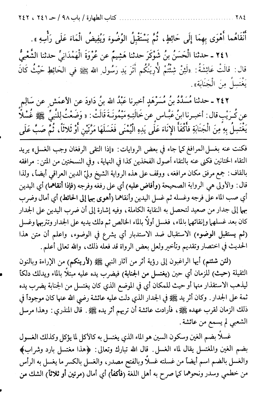 [244] (لَئِنْ شِئْتُمْ) أَيُّهَا الرَّاغِبُونَ إِلَى رُؤْيَةِ أَثَرٍ مِنْ آثَارِ النَّبِيِّ (لَأُرِيَنَّكُمْ) مِنَ الْإِرَاءَةِ وَبِالنُّونِ الثَّقِيلَةِ (حَيْثُ) لِلزَّمَانِ أَيْ حِينَ (يَغْتَسِلُ مِنَ الْجَنَابَةِ) فَيَضْرِبُ يَدَهُ عَلَيْهِ مُبْتَلًّا بِالْمَاءِ وَيُدَلِّكُ دَلْكًا لِيَذْهَبَ الِاسْتِقْذَارُ مِنْهَا أَوْ حَيْثُ لِلْمَكَانِ أَيْ فِي الْمَوْضِعِ الَّذِي كَانَ يَغْتَسِلُ مِنَ الْجَنَابَةِ يَضْرِبُ يَدَهُ ثمة على الجدار