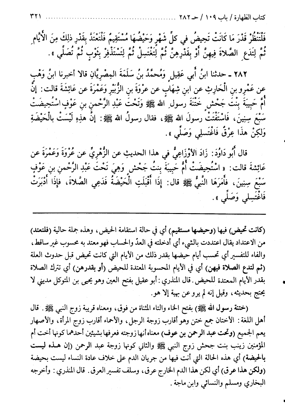 قَالَ أَهْلُ اللُّغَةِ الْأَخْتَانُ جَمْعُ خَتَنٍ وَهُمْ أَقَارِبُ زَوْجَةِ الرَّجُلِ وَالْأَحْمَاءُ أَقَارِبُ زَوْجِ الْمَرْأَةِ وَالْأَصْهَارُ يَعُمُّ الْجَمِيعَ (وَتَحْتَ عبد الرحمن بن عوف) معناه أنه زَوْجَتُهُ فَعَرَّفَهَا بِشَيْئَيْنِ أَحَدُهُمَا كَوْنُهَا أُخْتَ أُمِّ الْمُؤْمِنِينَ زَيْنَبَ بِنْتِ جَحْشٍ زَوْجِ النَّبِيِّ صَلَّى اللَّهُ عَلَيْهِ وَسَلَّمَ وَالثَّانِي كَوْنُهَا زَوْجَةَ عَبْدِ الرَّحْمَنِ (إِنَّ هَذِهِ لَيْسَتْ بِالْحَيْضَةِ) أَيْ هَذِهِ الْحَالَةُ الَّتِي أَنْتِ فِيهَا مِنْ جَرَيَانِ الدَّمِ عَلَى خِلَافِ عَادَةِ النِّسَاءِ لَيْسَتْ بِحَيْضَةٍ (وَلَكِنْ هَذَا عِرْقٌ) أَيْ لَكِنْ هَذَا الدَّمُ الْخَارِجُ عِرْقٌ وَسَلَفَ تَفْسِيرُ الْعِرْقِ