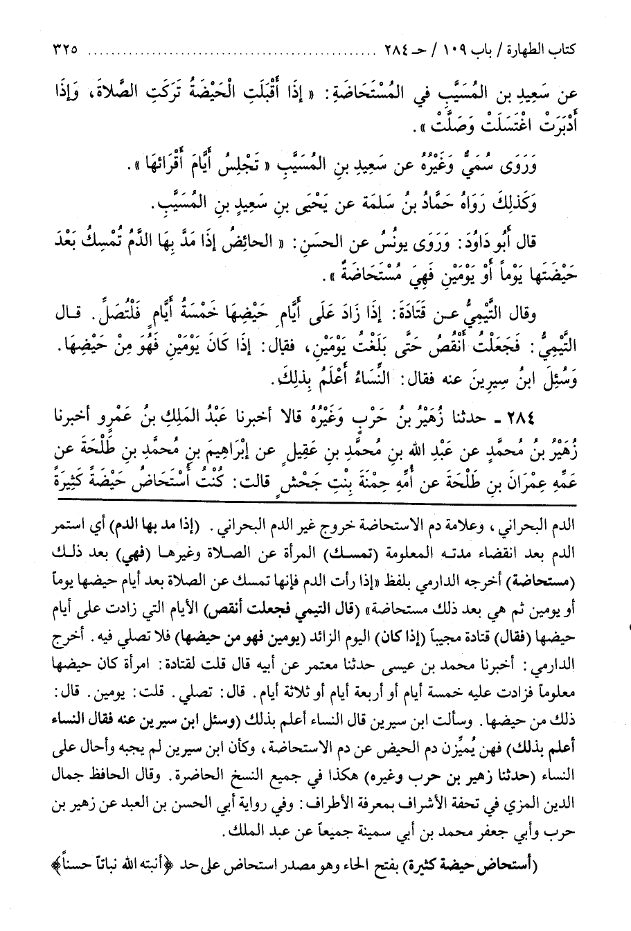 وَسَأَلْتُ بن سيرين قال النساء أعلم بذلك (وسئل بن سِيرِينَ عَنْهُ فَقَالَ النِّسَاءُ أَعْلَمُ بِذَلِكَ) فَهُنَّ يُمَيِّزْنَ دَمَ الْحَيْضِ عَنْ دَمِ الِاسْتِحَاضَةِ وَكَأَنَّ بن سِيرِينَ لَمْ يُجِبْهُ وَأَحَالَ عَلَى النِّسَاءِ (حَدَّثَنَا زُهَيْرُ بْنُ حَرْبٍ وَغَيْرُهُ) هَكَذَا فِي جَمِيعِ النُّسَخِ الْحَاضِرَةِ
