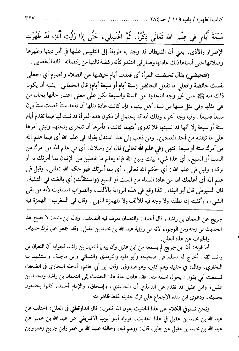 وَمَنْ ذَهَبَ إِلَى هَذَا اسْتَدَلَّ بِقَوْلِهِ فِي عِلْمِ اللَّهِ أَيْ فِيمَا عَلِمَ اللَّهُ مِنْ أَمْرِكِ سِتَّةً أَوْ سَبْعَةً انْتَهَى (فِي علم الله تعالى) قال بن رَسْلَانَ أَيْ فِي عِلْمِ اللَّهِ مِنْ أَمْرِكِ مِنَ السِّتِّ أَوِ السَّبْعِ أَيْ هَذَا شَيْءٌ بَيْنَكِ وَبَيْنَ اللَّهِ فَإِنَّهُ يَعْلَمُ مَا تَفْعَلِينَ مِنَ الْإِتْيَانِ بِمَا أَمَرْتُكِ بِهِ أَوْ تَرْكِهِ وَقِيلَ فِي عِلْمِ اللَّهِ أَيْ حُكْمِ اللَّهِ تَعَالَى أَيْ بِمَا أَمَرْتُكِ فَهُوَ حُكْمُ اللَّهِ تَعَالَى وَقِيلَ فِي عِلْمِ اللَّهِ أَيْ أَعْلَمَكِ اللَّهُ مِنْ عَادَةِ النِّسَاءِ مِنَ السِّتِّ أَوِ السَّبْعِ (وَاسْتَنْقَأْتِ) أَيْ بَالَغْتِ فِي التَّنْقِيَةِ