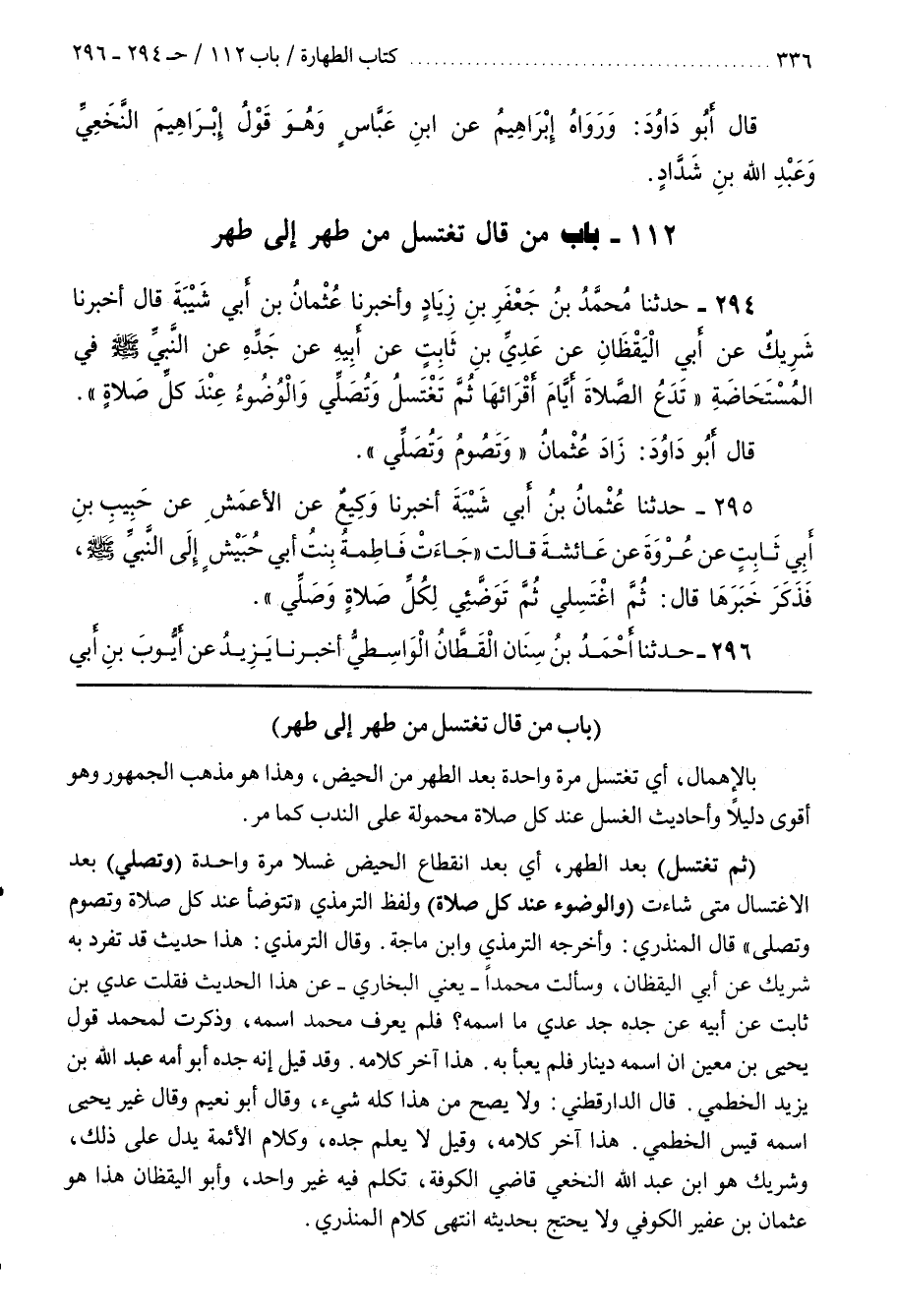 ([297] بَاب مَنْ قَالَ تَغْتَسِلُ مِنْ طُهْرٍ إِلَى طُهْرٍ بِالْإِهْمَالِ)