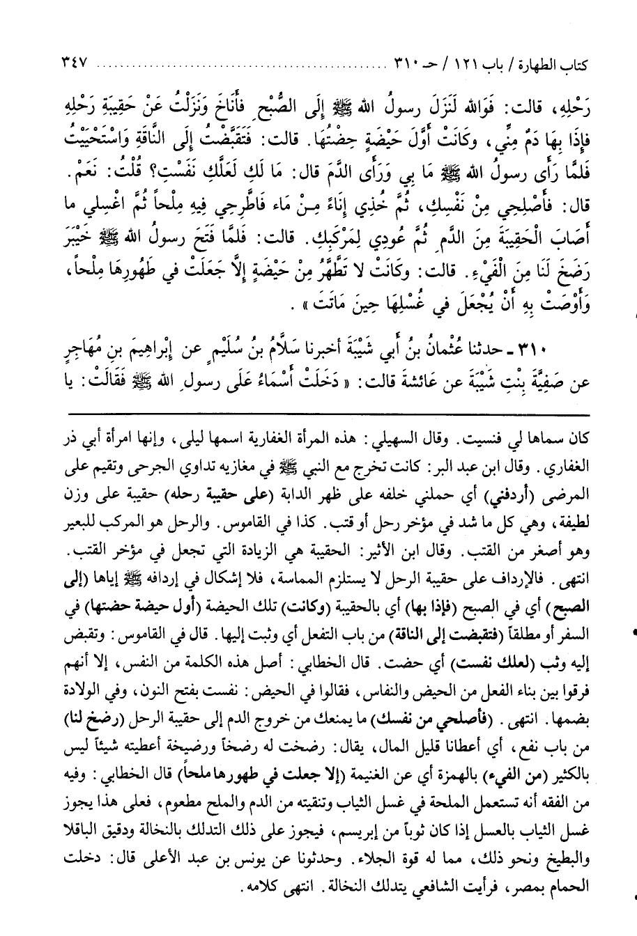 (فَأَصْلِحِي مِنْ نَفْسِكِ) مَا يَمْنَعُكِ مِنْ خُرُوجِ الدَّمِ إِلَى حَقِيبَةِ الرَّحْلِ (رَضَخَ لَنَا) مِنْ بَابِ نَفَعَ أَيْ أَعْطَانَا قَلِيلَ الْمَالِ يُقَالُ رَضَخْتُ لَهُ رَضْخًا وَرَضِيخَةً أَعْطَيْتُهُ شَيْئًا لَيْسَ بِالْكَثِيرِ (من الفيء) بالهمزة أي عن الْغَنِيمَةِ (إِلَّا جَعَلَتْ فِي طَهُورِهَا مِلْحًا) قَالَ الخطابي وفيه من الفقه أنه تستعمل الملحة فِي غَسْلِ الثِّيَابِ وَتَنْقِيَتِهِ مِنَ الدَّمِ وَالْمِلْحُ مَطْعُومٌ فَعَلَى هَذَا يَجُوزُ غَسْلُ الثِّيَابِ بِالْعَسَلِ إِذَا كَانَ ثَوْبًا مِنْ إِبْرَيْسَمَ فَيَجُوزُ عَلَى ذَلِكَ التَّدَلُّكُ بِالنُّخَالَةِ وَدَقِيقِ الْبَاقِلَّا وَالْبِطِّيخِ وَنَحْوِ ذَلِكَ مِمَّا لَهُ قُوَّةُ الْجَلَاءِ