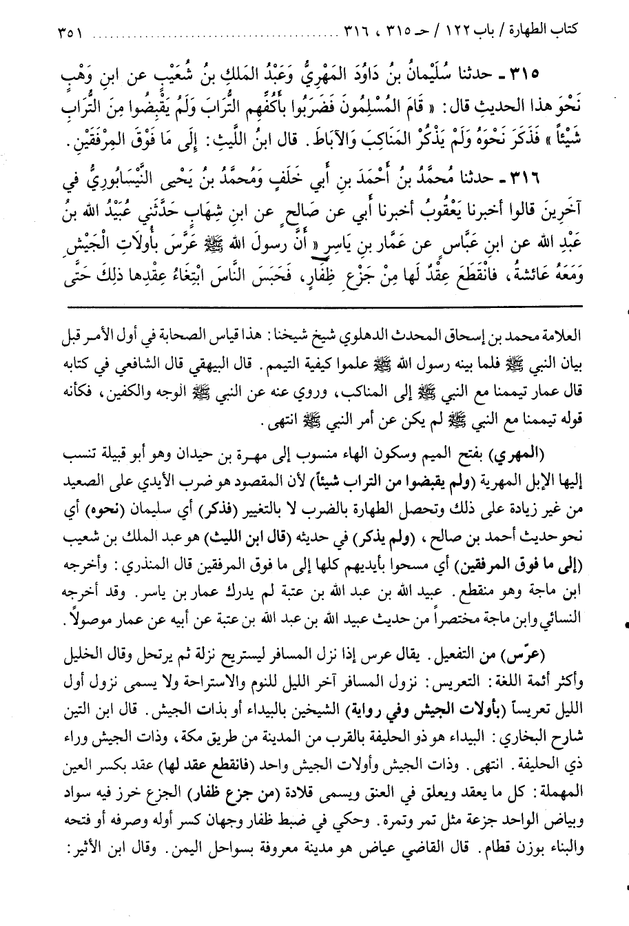 قال العلامة محمد إِسْحَاقَ الْمُحَدِّثُ الدَّهْلَوِيُّ شَيْخُ شَيْخِنَا هَذَا قِيَاسُ الصَّحَابَةِ فِي أَوَّلِ الْأَمْرِ قَبْلَ بَيَانِ النَّبِيِّ صَلَّى اللَّهُ عَلَيْهِ وَسَلَّمَ فَلَمَّا بَيَّنَّهُ رَسُولُ اللَّهِ صَلَّى اللَّهُ عَلَيْهِ وَسَلَّمَ عَلِمُوا كَيْفِيَّةَ التَّيَمُّمِ