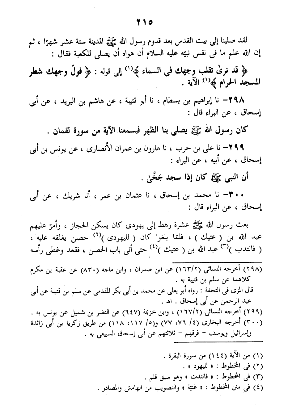 298 - نا إِبْرَاهِيمُ بْنُ بِسْطَامٍ، نا أَبُو قُتَيْبَةَ، عَنْ هَاشِمِ بْنِ الْبَرِيدِ، عَنْ أَبِي إِسْحَاقَ، عَنِ الْبَرَاءِ قَالَ: كَانَ رَسُولُ اللَّهِ صَلَّى اللهُ عَلَيْهِ وَسَلَّمَ §يُصَلِّي بِنَا الظُّهْرَ فَيُسْمِعُنَا الْآيَةَ مِنْ سُورَةِ لُقْمَانَ "