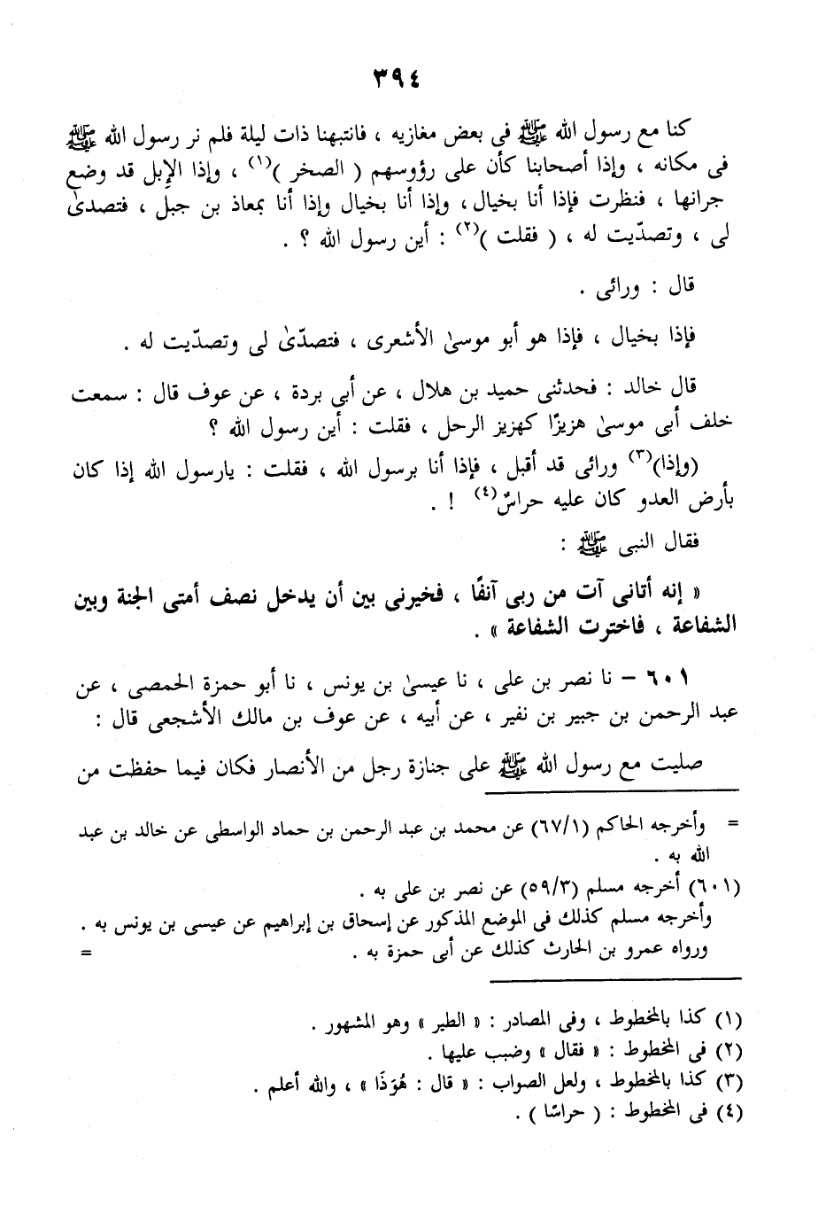 601 - نا نَصْرُ بْنُ عَلِيٍّ، نا عِيسَى بْنُ يُونُسَ، نا أَبُو حَمْزَةَ الْحِمْصِيُّ، عَنْ عَبْدِ الرَّحْمَنِ بْنِ جُبَيْرِ بْنِ نُفَيْرٍ، عَنْ أَبِيهِ، عَنْ عَوْفِ بْنِ مَالِكٍ الْأَشْجَعِيِّ قَالَ: صَلَّيْتُ مَعَ رَسُولِ اللَّهِ صَلَّى اللهُ عَلَيْهِ وَسَلَّمَ عَلَى جِنَازَةِ رَجُلٍ مِنَ الْأَنْصَارِ، فَكَانَ فِيمَا حَفِظْتُ مِنْ دُعَائِهِ -[395]-: «§اللَّهُمَّ اغْفِرْ لَهُ وَارْحَمْهُ، وَاعْفُ عَنْهُ وَعَافِهِ، وَأَكْرِمْ نُزُلَهُ، وَوَسِّعْ مُدْخَلَهُ، وَاغْسِلْهُ بِمَاءٍ وَبَرَدٍ، وَنَقِّهِ مِنَ الْخَطَايَا كَمَا يُنَقَّى الثَّوْبُ الْأَبْيَضُ مِنَ الدَّنَسِ، اللَّهُمَّ أَبْدِلْهُ دَارًا خَيْرًا مِنْ دَارِهِ، وَأَهْلًا خَيْرًا مِنْ أَهْلِهِ، وَزَوْجَةً خَيْرًا مِنْ زَوْجَتِهِ، وَقِهْ فِتْنَةَ الْقَبْرِ وَعَذَابَ الْقَبْرِ»