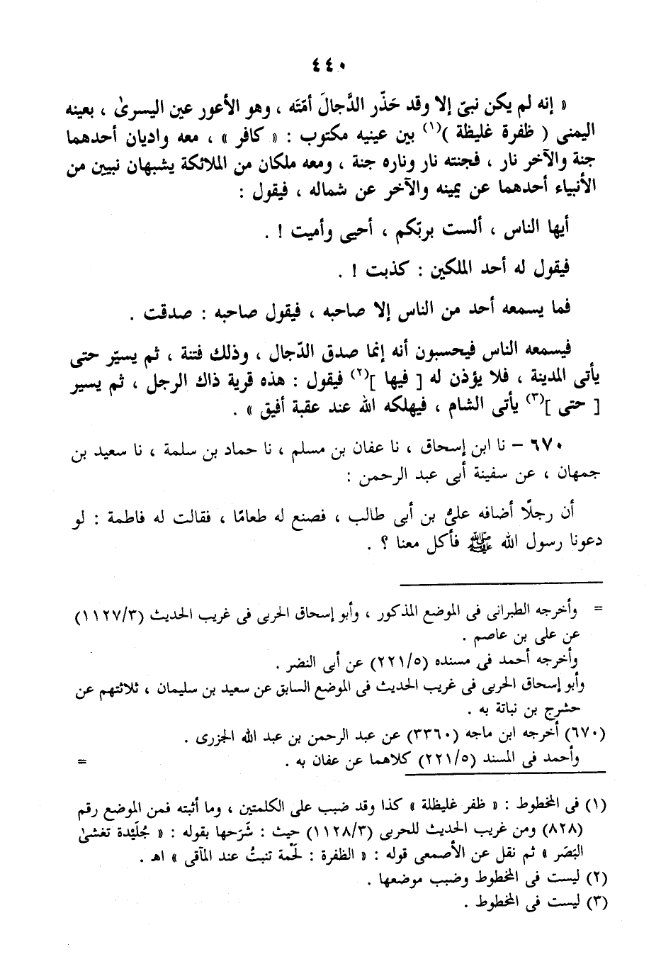 670 - نا ابْنُ إِسْحَاقَ، نا عَفَّانُ بْنُ مُسْلِمٍ، نا حَمَّادُ بْنُ سَلَمَةَ، نا سَعِيدُ بْنُ جُمْهَانَ، عَنْ سَفِينَةَ أَبِي عَبْدِ الرَّحْمَنِ، أَنَّ رَجُلًا أَضَافَهُ عَلِيُّ بْنُ أَبِي طَالِبٍ، فَصَنَعَ لَهُ طَعَامًا، فَقَالَتْ لَهُ فَاطِمَةُ: لَوْ دَعَوْنَا رَسُولَ اللَّهِ صَلَّى اللهُ عَلَيْهِ وَسَلَّمَ فَأَكَلَ مَعَنَا؟ فَدَعَاهُ فَجَاءَ، فَوَضَعَ يَدَهُ إِلَى عِضَادَتَيِ الْبَابِ فَرَأَى قِرَامًا فِي نَاحِيَةِ الْبَيْتِ فَرَجَعَ، فَقَالَتْ فَاطِمَةُ لِعَلِيٍّ: الْحَقْهُ، فَقُلْ لَهُ: مَا رَجَعَكَ يَا رَسُولَ اللَّهِ؟ قَالَ: «§إِنَّهُ لَيْسَ لِي أَنْ أَدْخُلَ بَيْتًا مُزَوَّقًا»