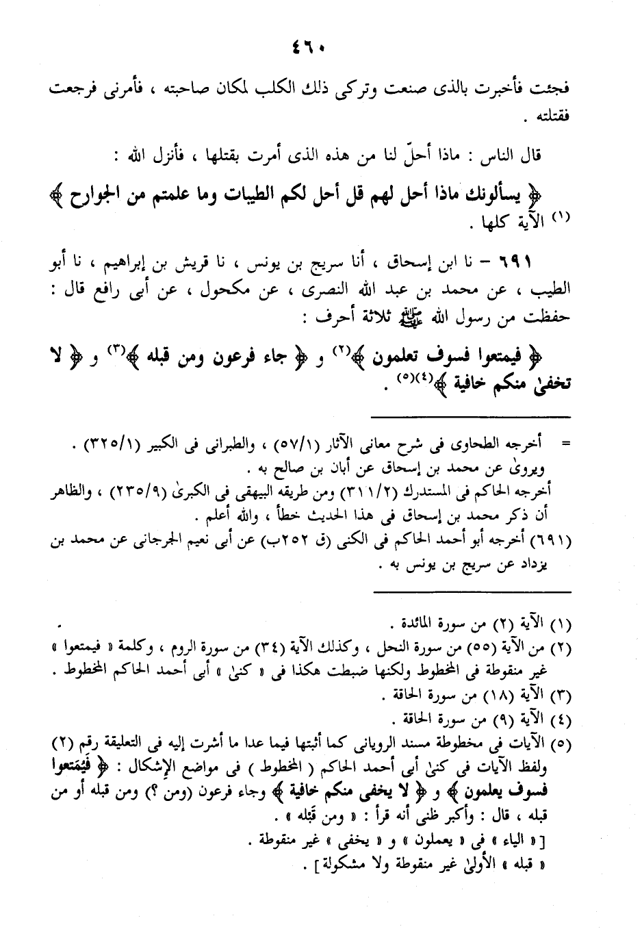 691 - نا ابْنُ إِسْحَاقَ، أَنَا سُرَيْجُ بْنُ يُونُسَ، نا قُرَيْشُ بْنُ إِبْرَاهِيمَ، نا أَبُو الطِّيبِ، عَنْ مُحَمَّدِ بْنِ عَبْدِ اللَّهِ النَّصْرِيِّ، عَنْ مَكْحُولٍ، عَنْ أَبِي رَافِعٍ قَالَ: §حَفِظْتُ مِنْ رَسُولِ اللَّهِ صَلَّى اللهُ عَلَيْهِ وَسَلَّمَ ثَلَاثَةَ أَحْرُفٍ: {فَتَمَتَّعُوا فَسَوْفَ تَعْلَمُونَ} [النحل: 55] وَ {جَاءَ فِرْعَوْنُ وَمَنْ قَبْلَهُ} [الحاقة: 9] وَ {لَا تَخْفَى مِنْكُمْ خَافِيَةٌ} [الحاقة: 18]