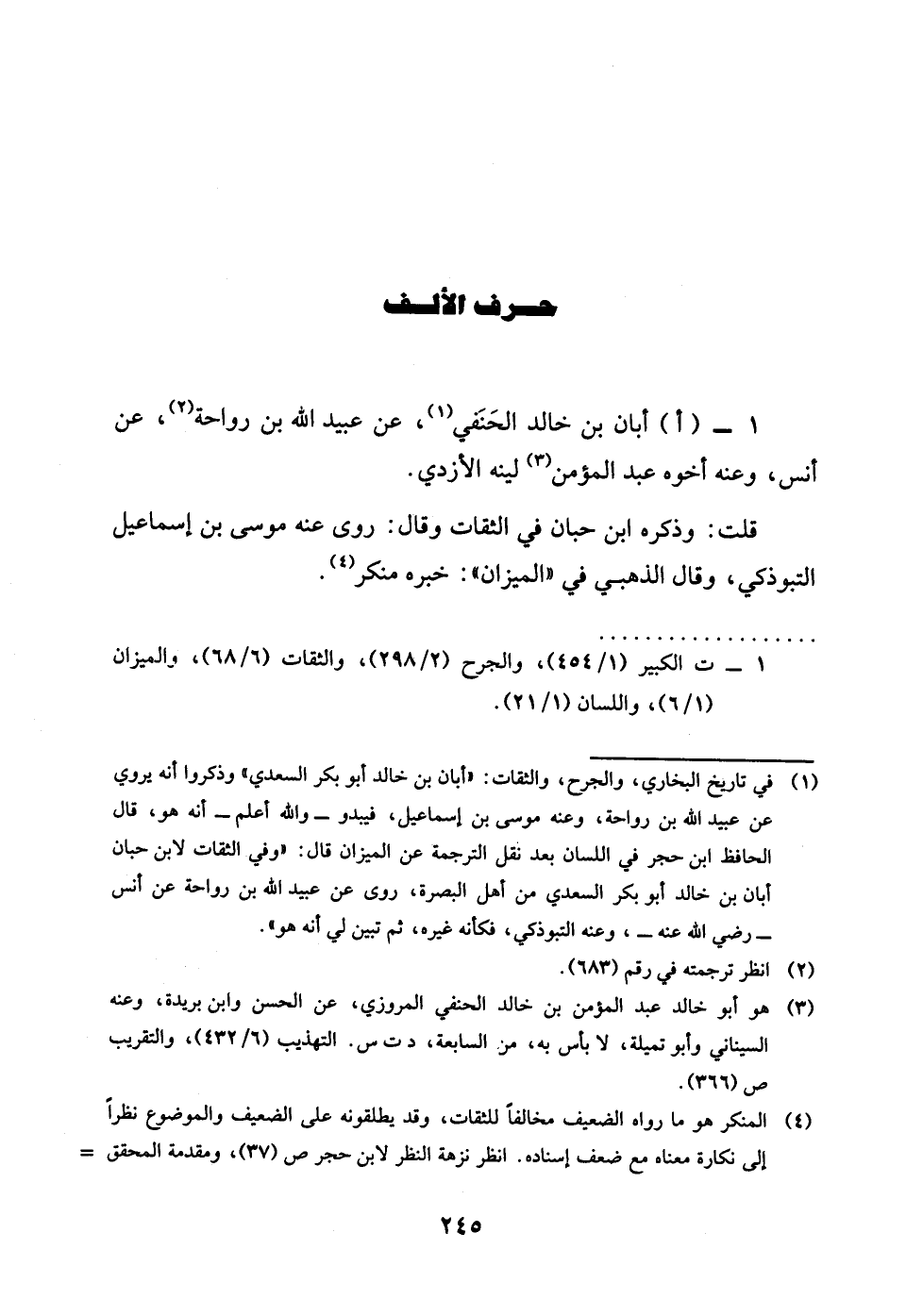 1 - اأبان بن خَالِد الْحَنَفِيّ عَن عبيد الله بن رَوَاحَة عَن أنس وَعنهُ اخوه عبد الْمُؤمن لينه الْأَزْدِيّ قلت وَذكره بن حبَان فِي الثِّقَات وَقَالَ روى عَنهُ مُوسَى بن إِسْمَاعِيل التَّبُوذَكِي وَقَالَ الذَّهَبِيّ فِي الْمِيزَان خَبره مُنكر