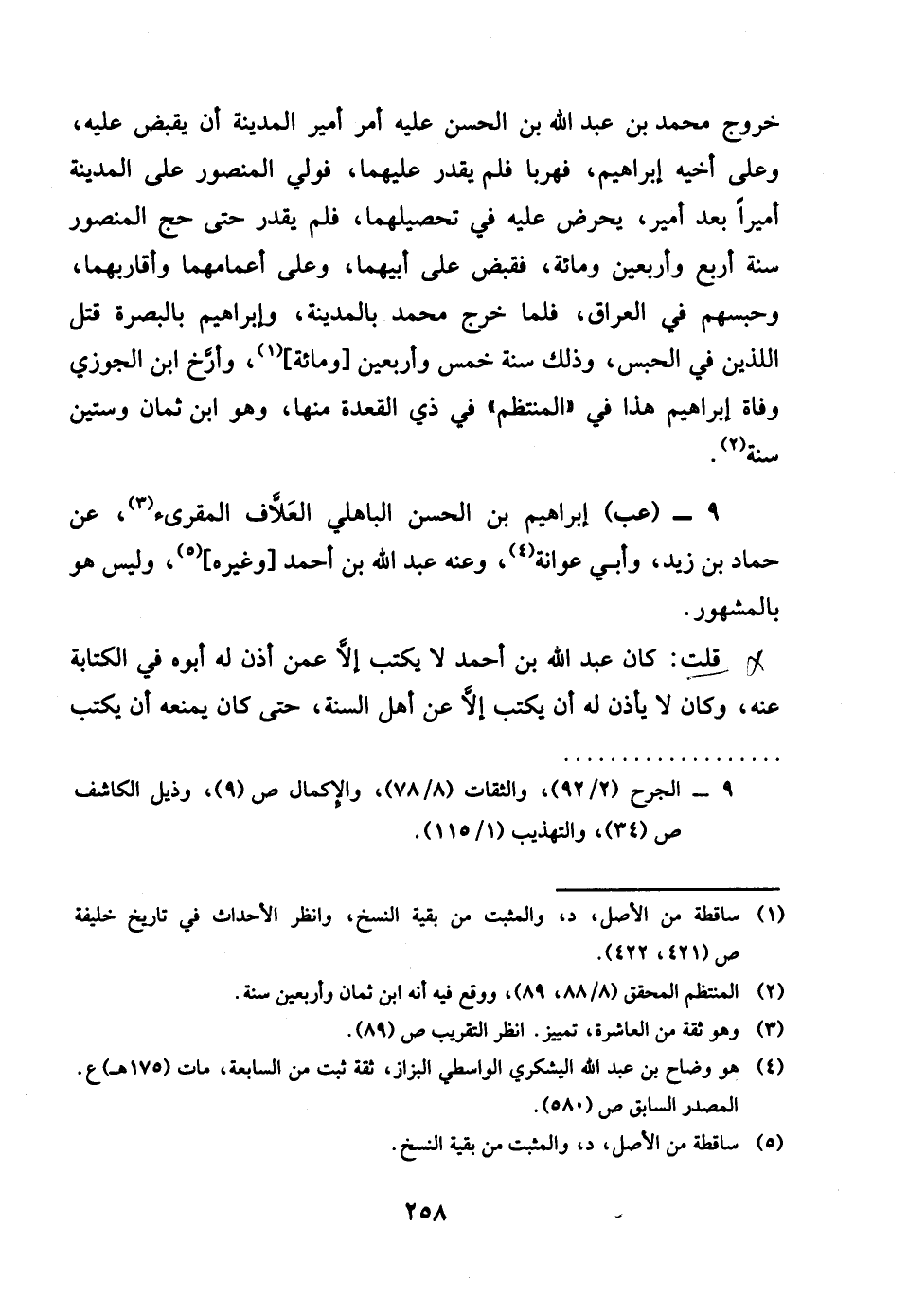 9 - عب إِبْرَاهِيم بن الْحسن الْبَاهِلِيّ العلاف الْمقري عَن حَمَّاد بن زيد وَأبي عوَانَة وَعنهُ عبد الله بن أَحْمد وَغَيره وَلَيْسَ هُوَ بالمشهور